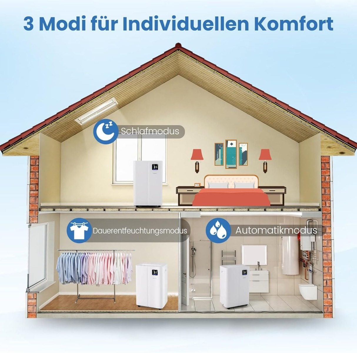 Šis 25,5 litro talpos elektrinis oro sausintuvas sukurtas efektyviai reguliuoti drėgmę dideliuose, iki 25 m² ploto kambariuose. Jis puikiai tinka tiek gyvenamiesiems namams, tiek rūsiams.