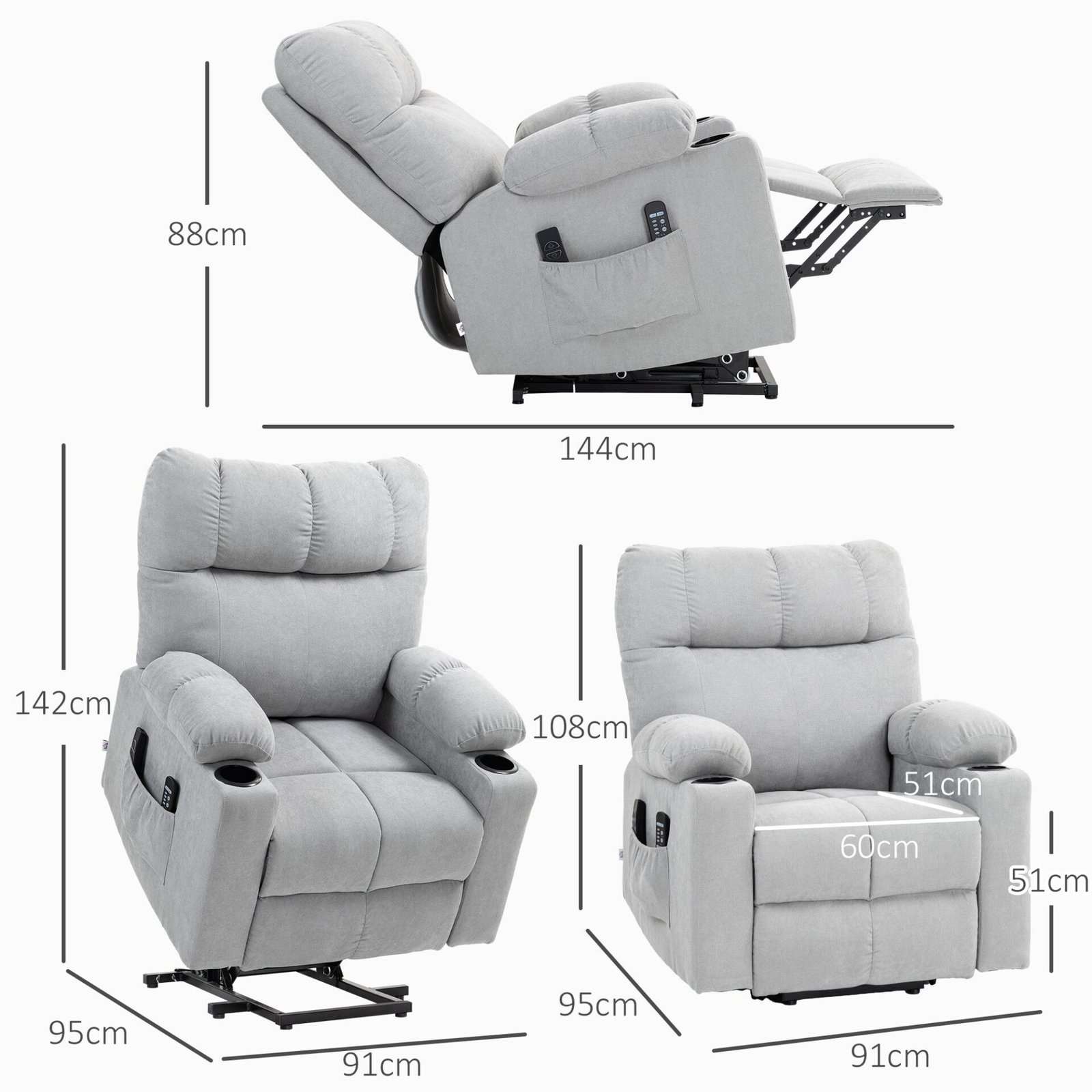 Jūsų poilsio būdas pasikeis amžinai, dėka šio televizoriaus krėslo su pakėlimo funkcija. Padėkite kojas ant įmontuotos kojų atramos ir nustatykite atlošą į mėgstamą padėtį – atsiloškite, žiūrėkite televizorių arba nusnauskite. Ilsėsitės ant storai paminkštinto, minkšto audinio, o aštuoni poilsio krėslo masažo taškai padės sumažinti raumenų įtampą.