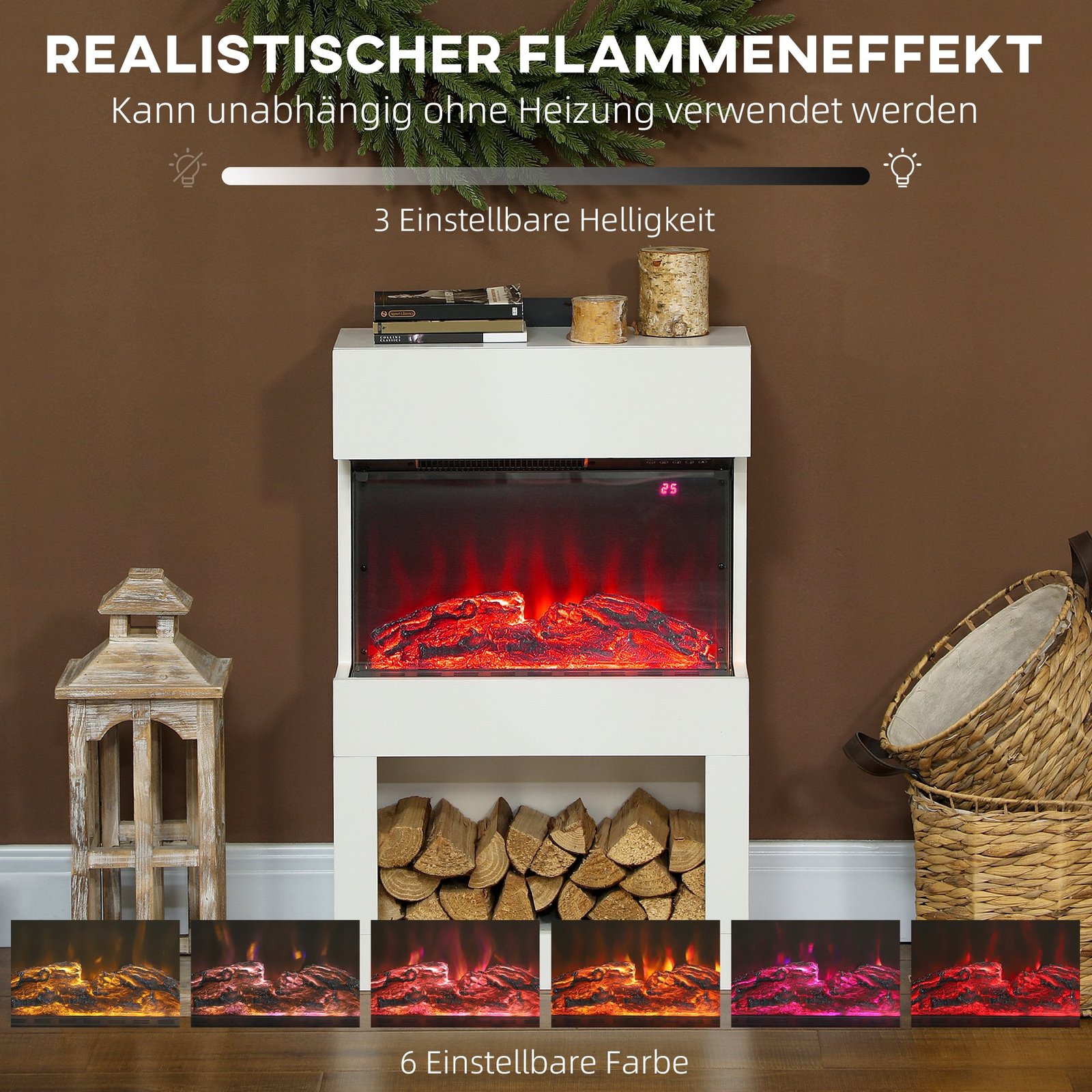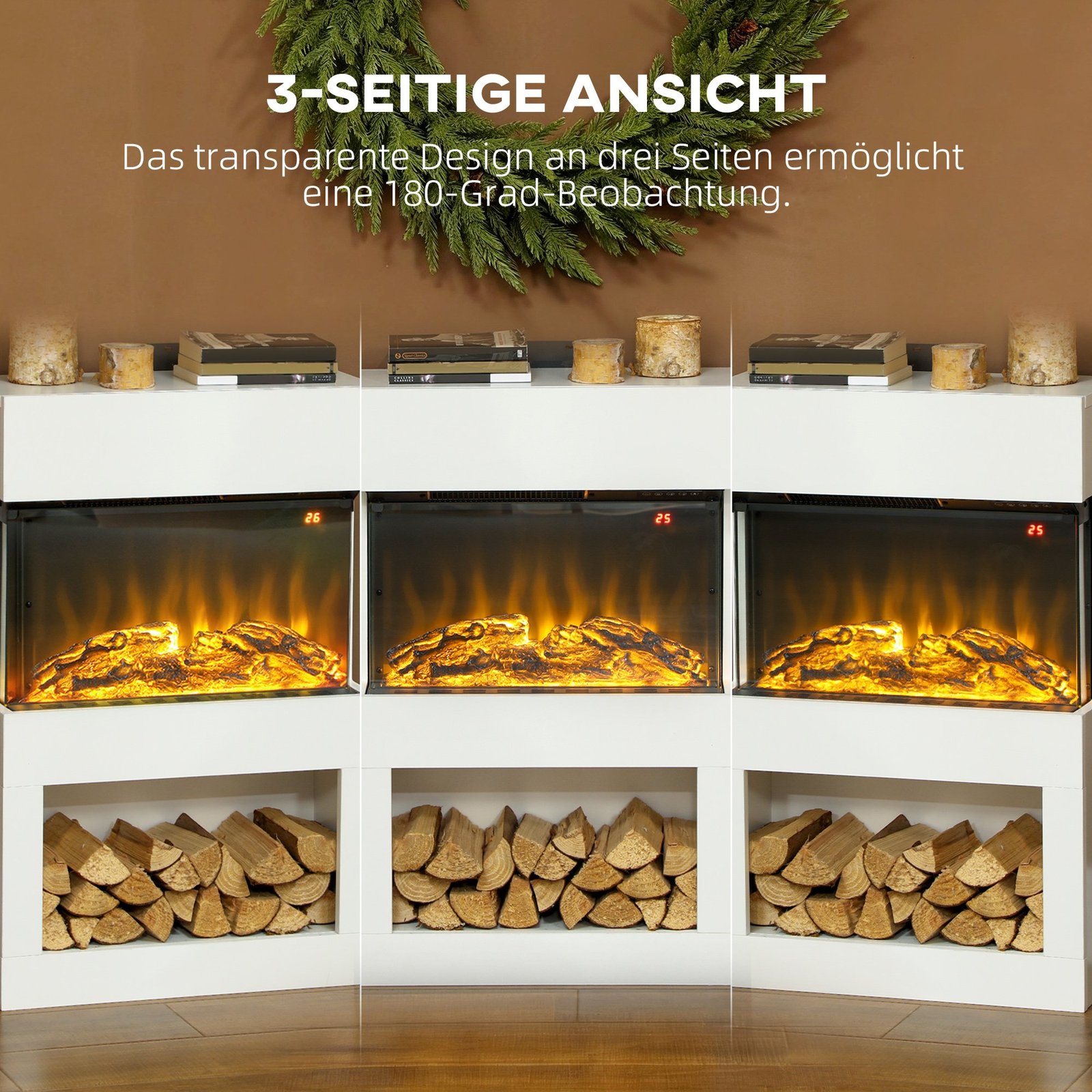 Elektrinis panoraminis židinys su lentyna, 2 šildymo lygiais ir 6 liepsnos spalvomis