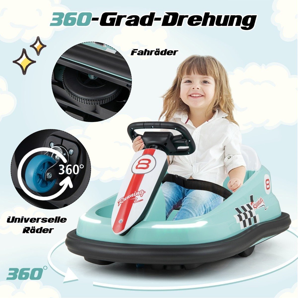 Elektrinis paspirtukas vaikams 360° sukimu ir LED apšvietimu (Žalia)