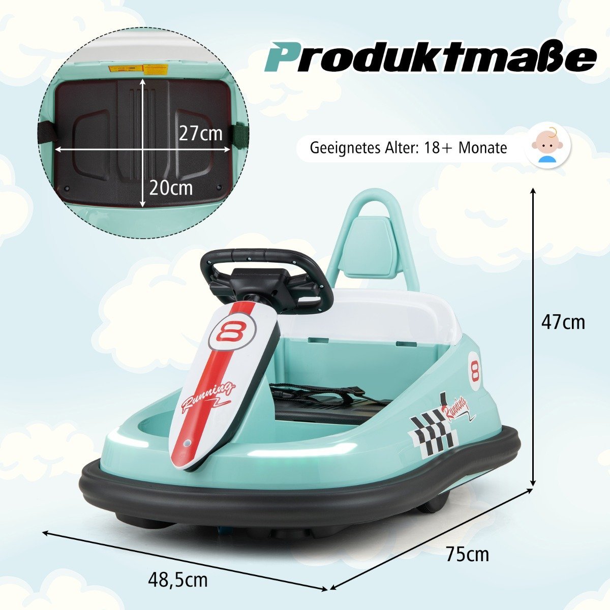 • Sėdynės dydis: 27 x 20 cm (Plotis x Gylis)
