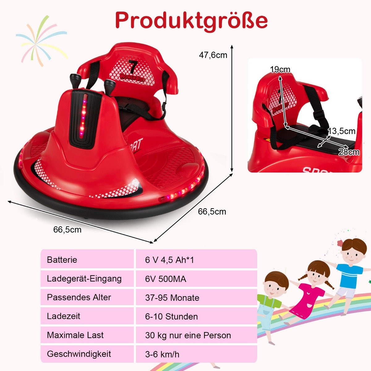 Elektrinis paspirtukas vaikams su 360 laipsnių sukimu ir LED apšvietimu (Raudona)