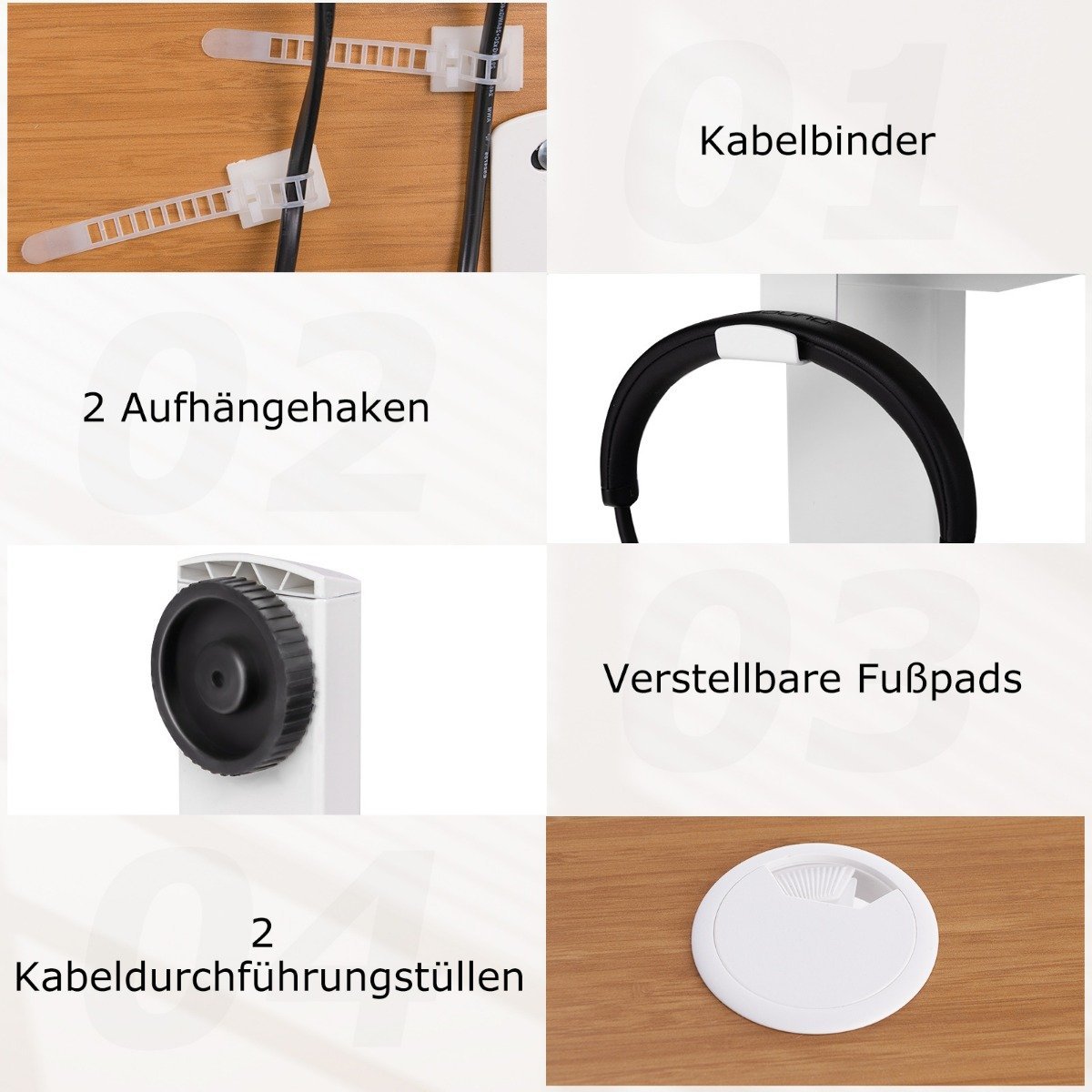 - Organizuota darbo erdvė: du patogūs kabliukai daiktams pasidėti ir integruota kabelių valdymo sistema.