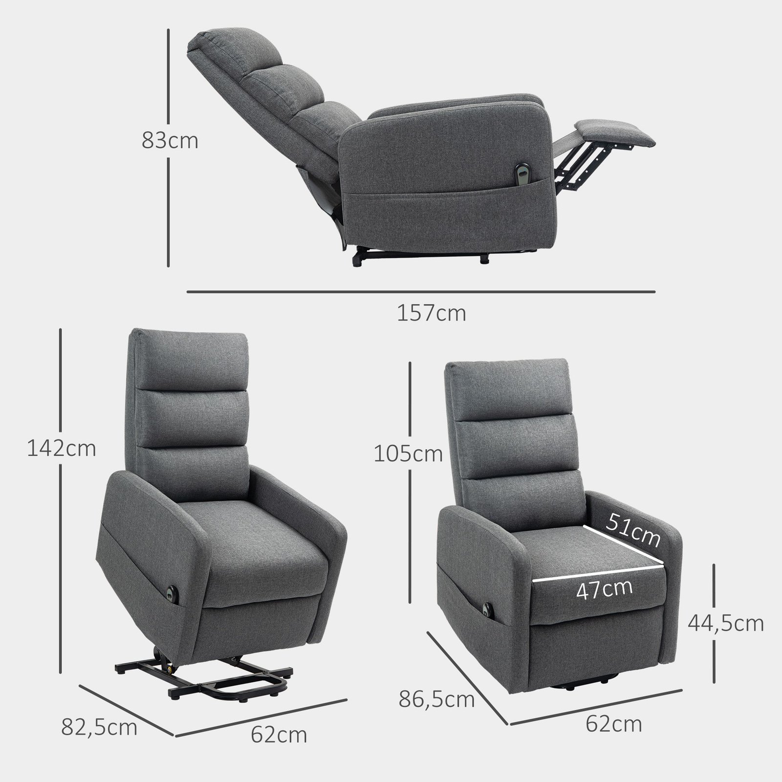 Šis televizoriaus krėslas su 40° sėdynės pakėlimu palengvina atsistojimą ir siūlo patogų, 135° laipsnių kampu be pakopų atlenkiamą atlošą su kojų atrama. Mėgaukitės kišeninių spyruoklių konstrukcijos ir kvėpuojančio, į liną panašaus audinio komfortu, visa tai palaikoma stabilaus plieninio rėmo. Be to, šoninė televizoriaus krėslo kišenė leidžia visada turėti svarbius daiktus po ranka.