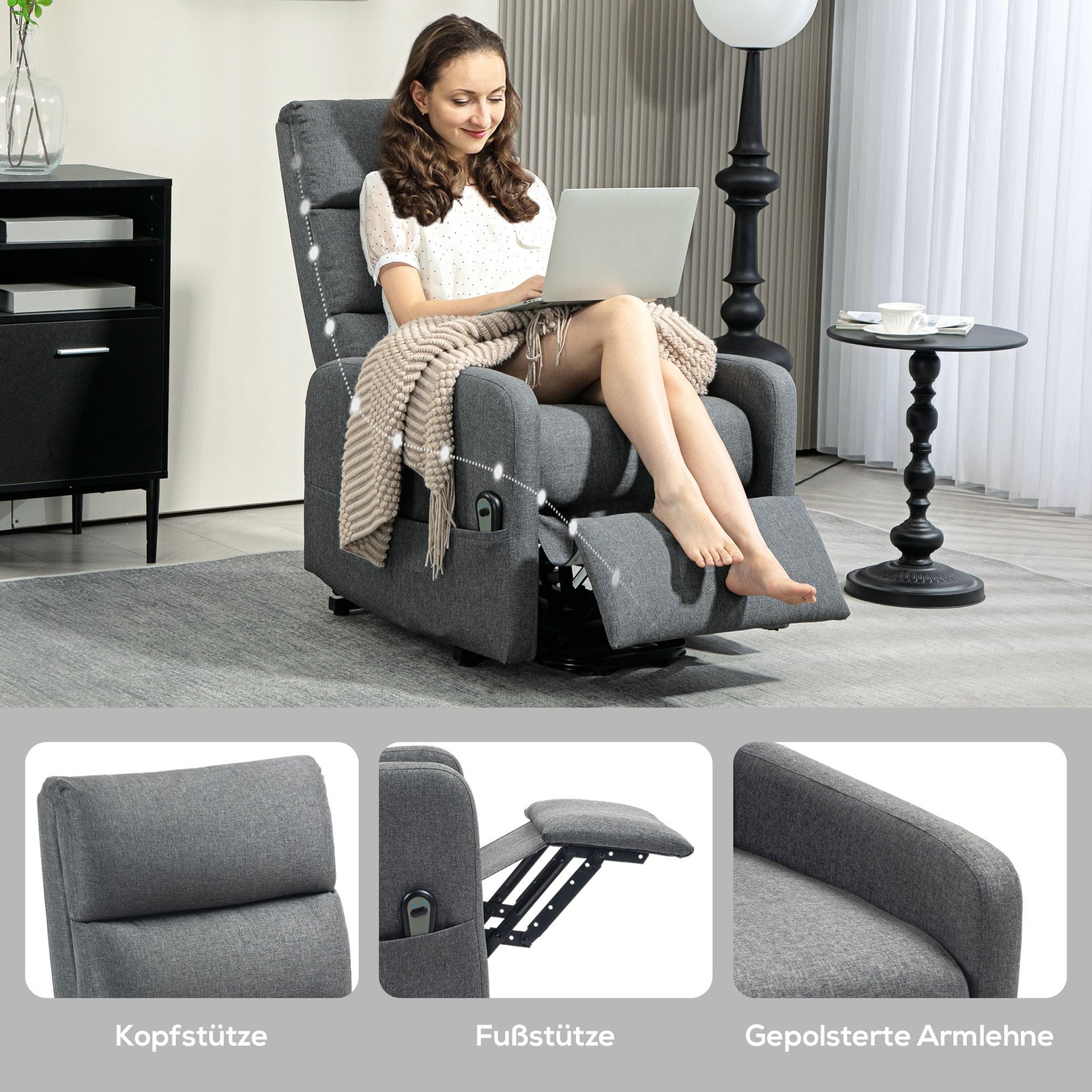 Elektrinis relaksacinis krėslas su pakėlimo funkcija