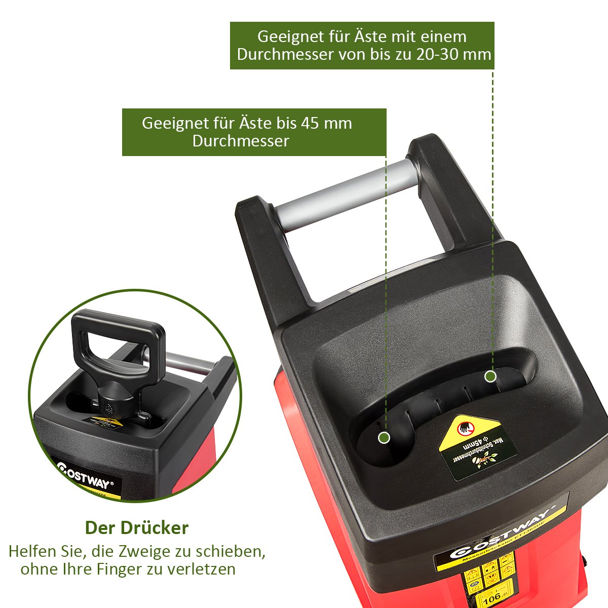 Elektrinis sodo smulkintuvas 2400W iki 45 mm skersmens šakos (Raudona ir juoda)