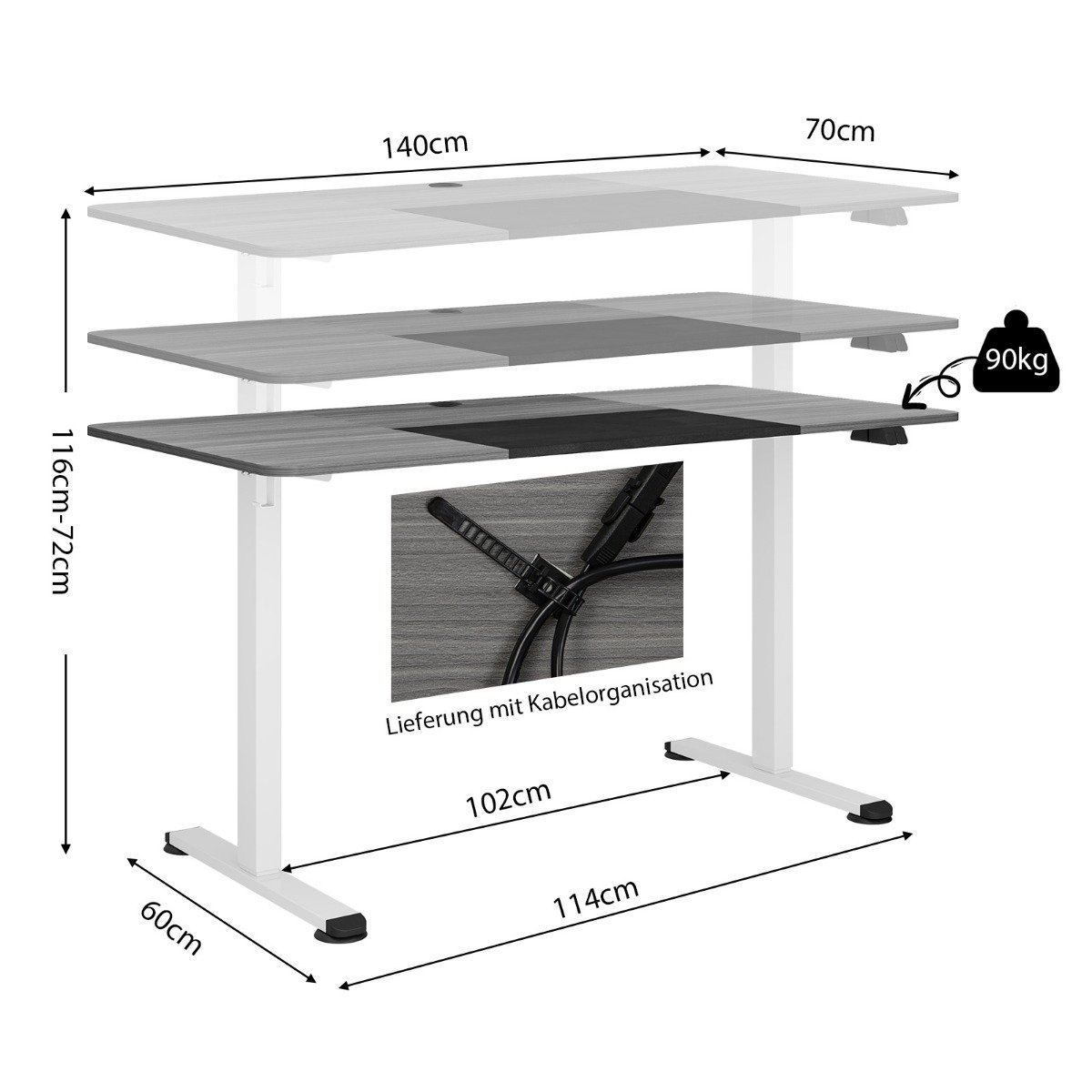 - Bendri matmenys: 140 x 70 x 72-116 cm (Ilgis x Plotis x Aukštis)