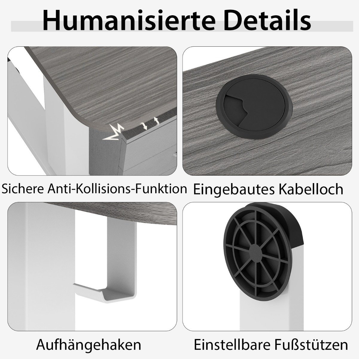 Elektrinis stalviršio aukščio reguliavimo stalas su kabliu 140×70 cm (Tamsiai pilka)