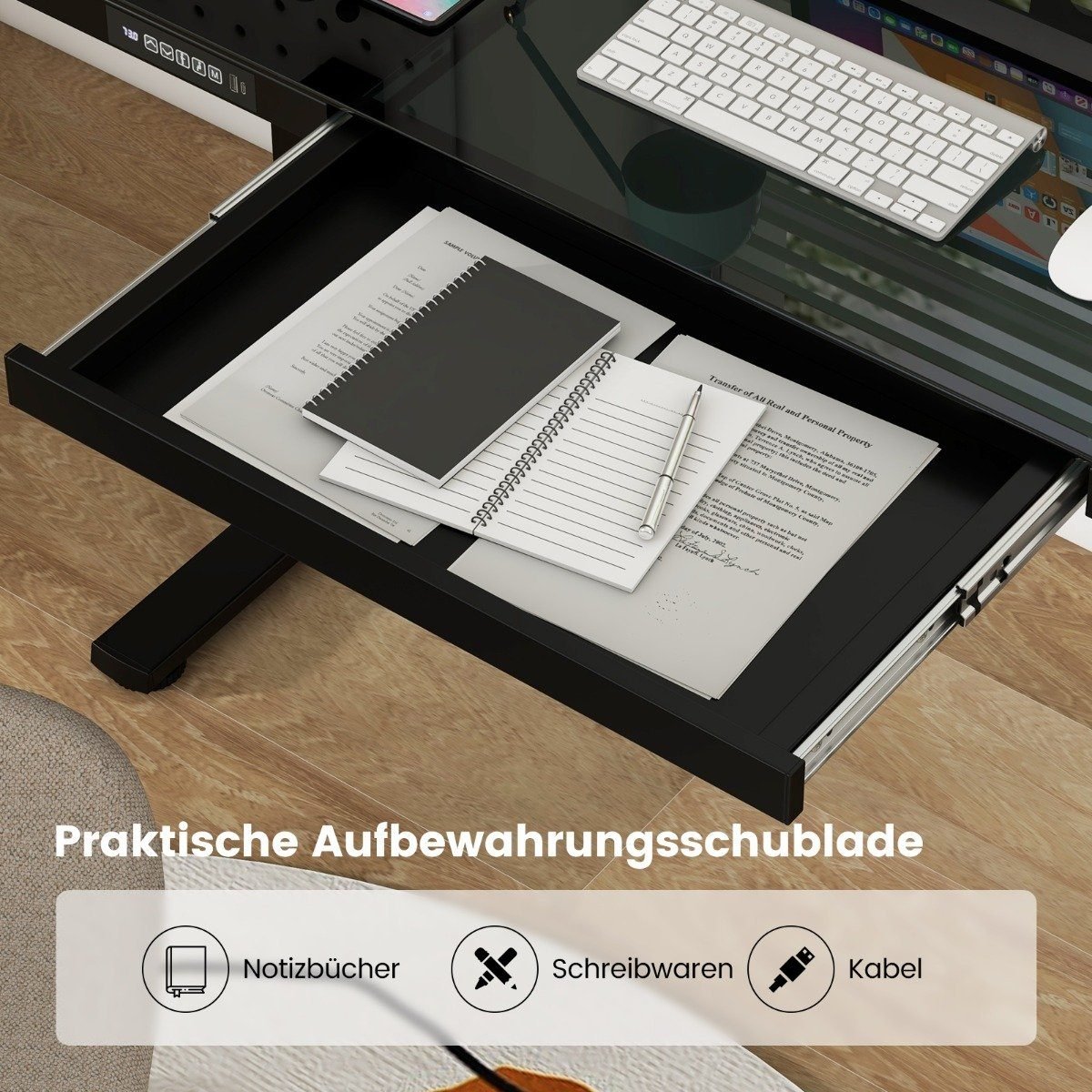 Elektrinis stalviršis su reguliuojamu aukščiu ir grūdinto stiklo plokšte (Juoda)