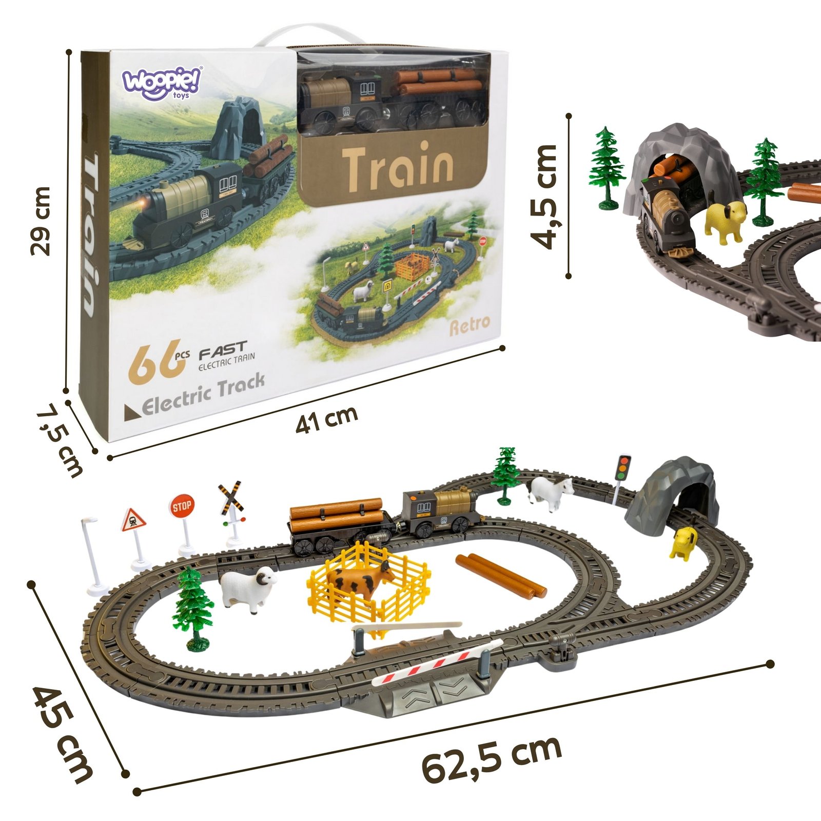 Elektrinis traukinukas ūkio tema su lokomotyvu ir XL trasa, 66 dalių