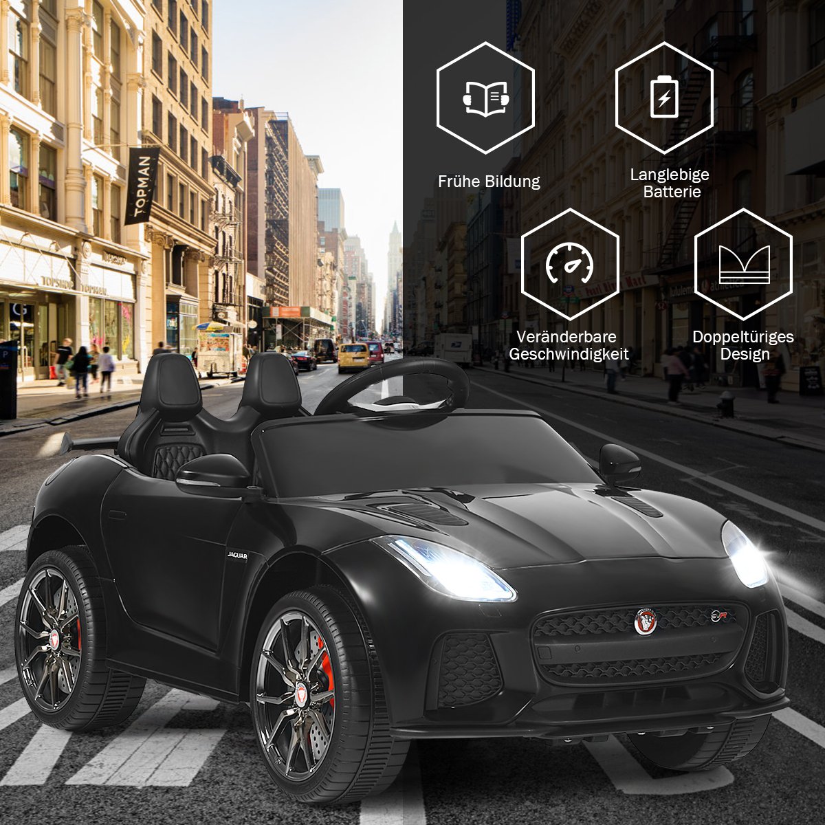 Elektrinis vaikiškas automobilis su istorijomis ir muzika (Juoda)
