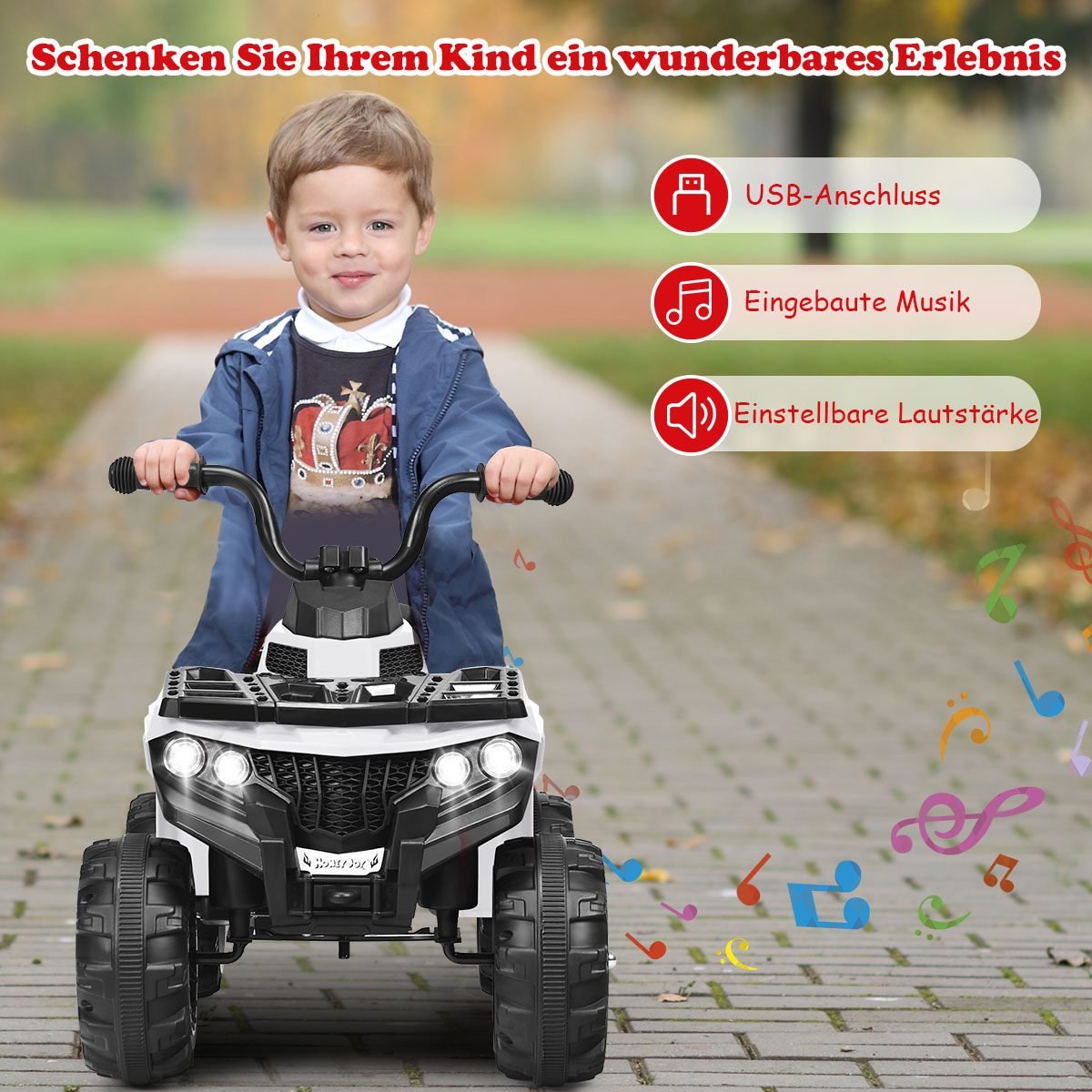 Elektrinis vaikiškas automobilis su MP3 USB jungtimis (Balta)