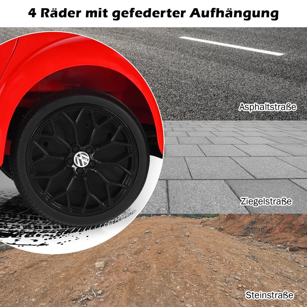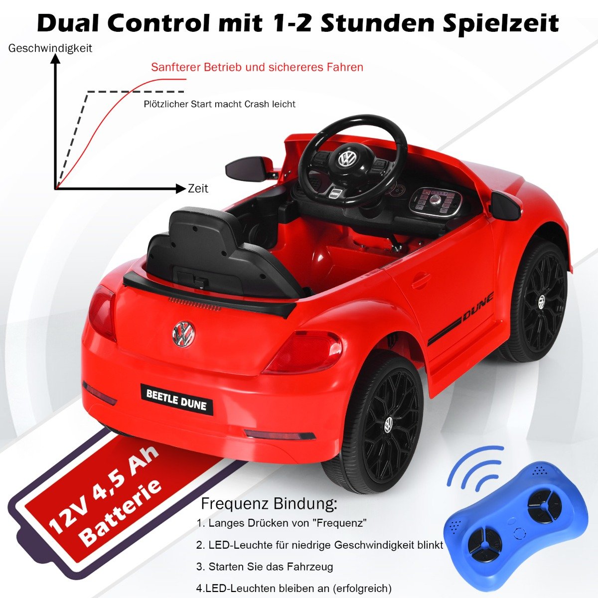- Autentiškas Volkswagen Käfer dizainas su atidaromomis durelėmis ir saugos diržu.