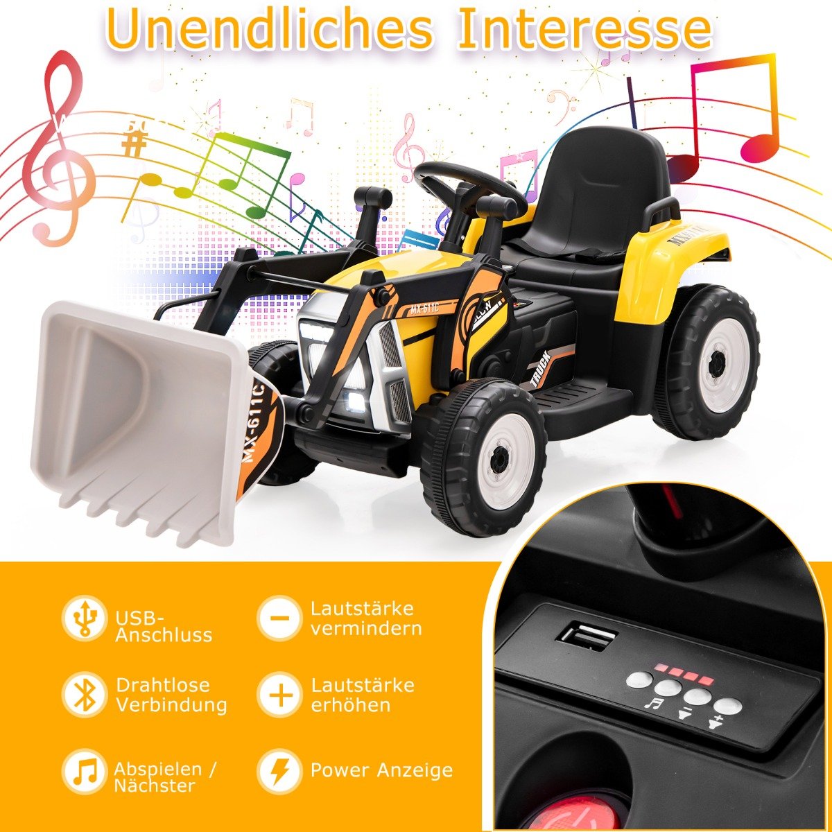 - Realistiškas dizainas su veikiančiu kaušu, skatinantis vaizduotę ir rankų-akių koordinaciją.