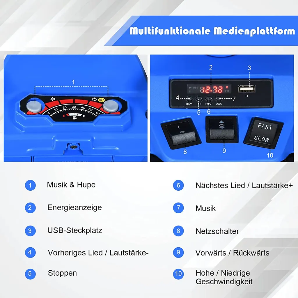 Elektrinis vaikiškas keturratis su muzika ir LED žibintais (Mėlyna)