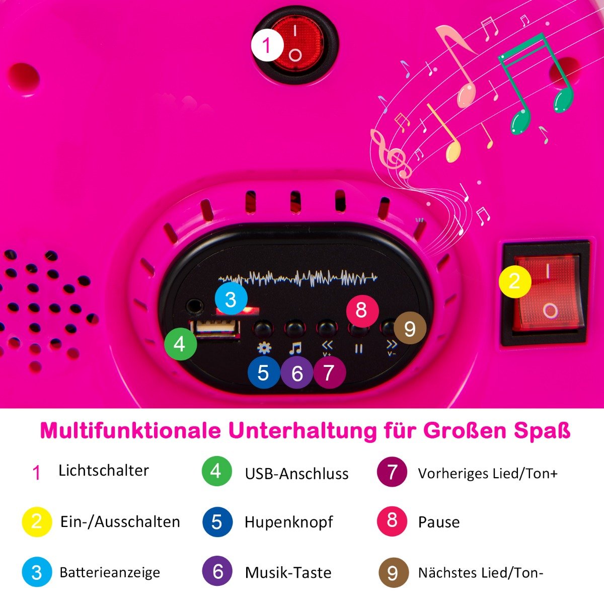 Dovanokite savo vaikui nepamirštamą vairavimo patirtį su šiuo elektriniu vaikišku paspirtuku! Sukurtas pramogoms ir saugumui užtikrinti, jis leis vaikams mėgautis saugiomis lenktynėmis, manevrais ir žaidimais. Įvairūs garsiniai bei šviesos efektai paverčia kiekvieną kelionę įspūdingu nuotykiu.