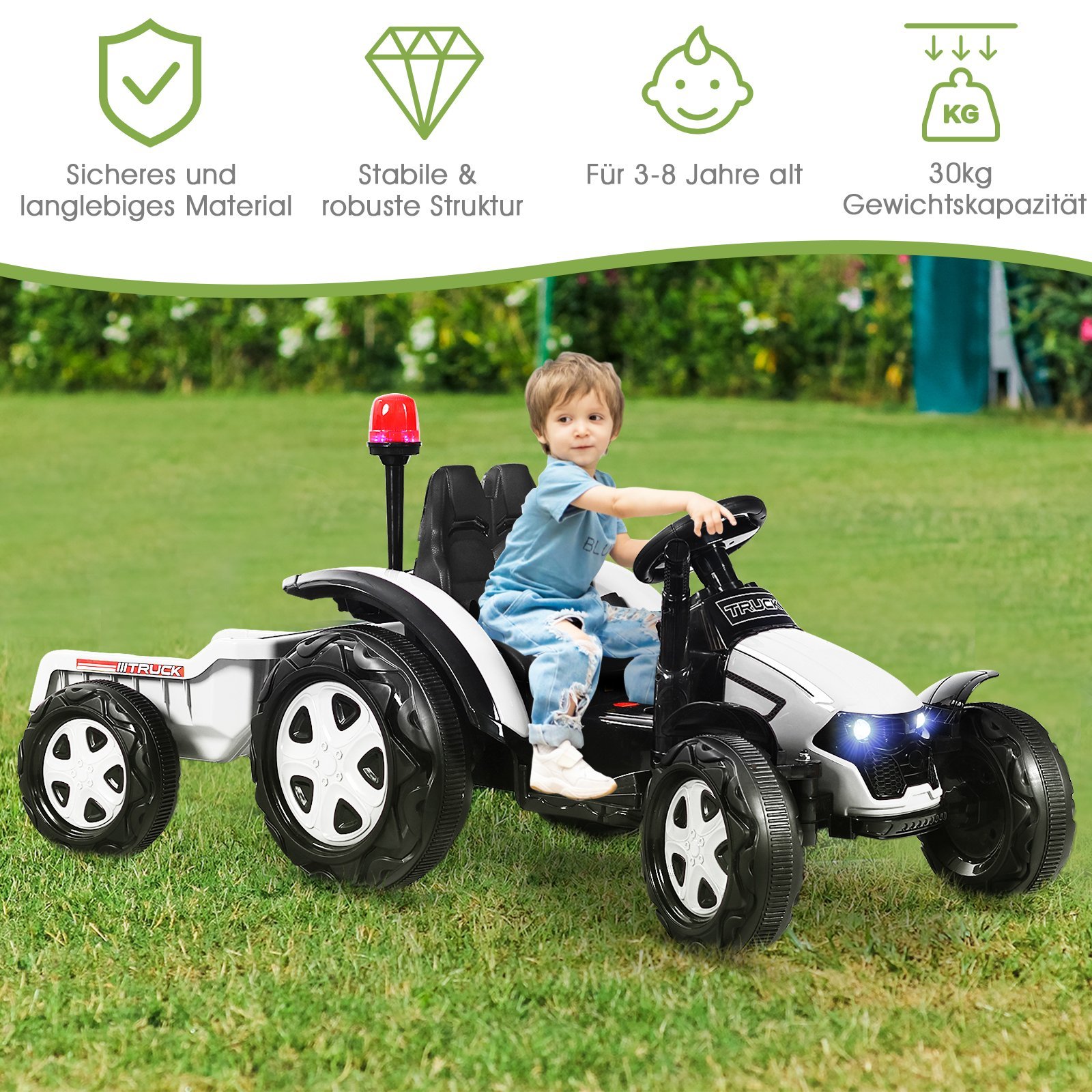 Elektrinis vaikiškas traktorius su priekaba (Balta)