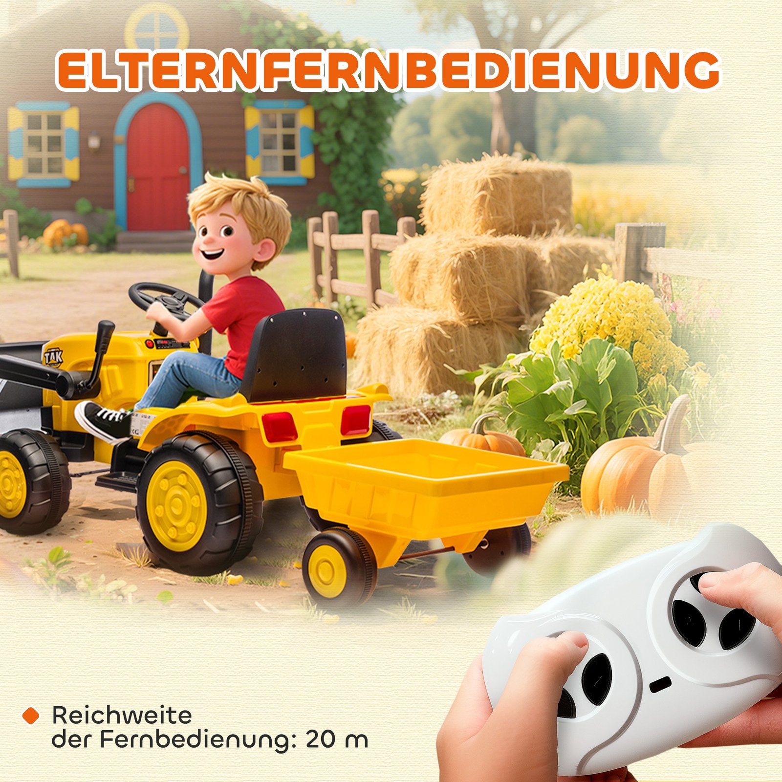 ✔ Priekinis krautuvas su kaušu ir nuimama elektromobilio priekaba tikram kasimo bei transportavimo žaidimui