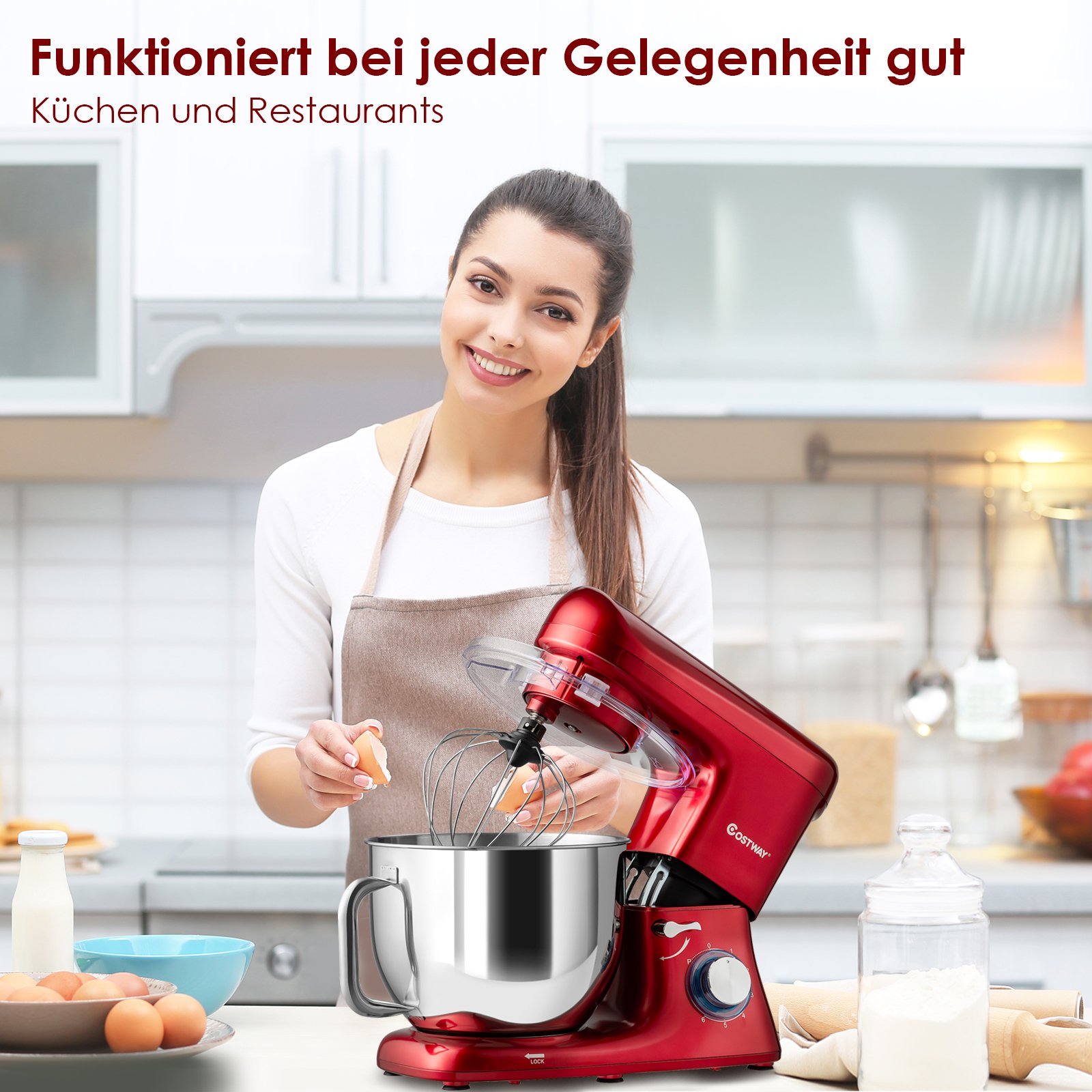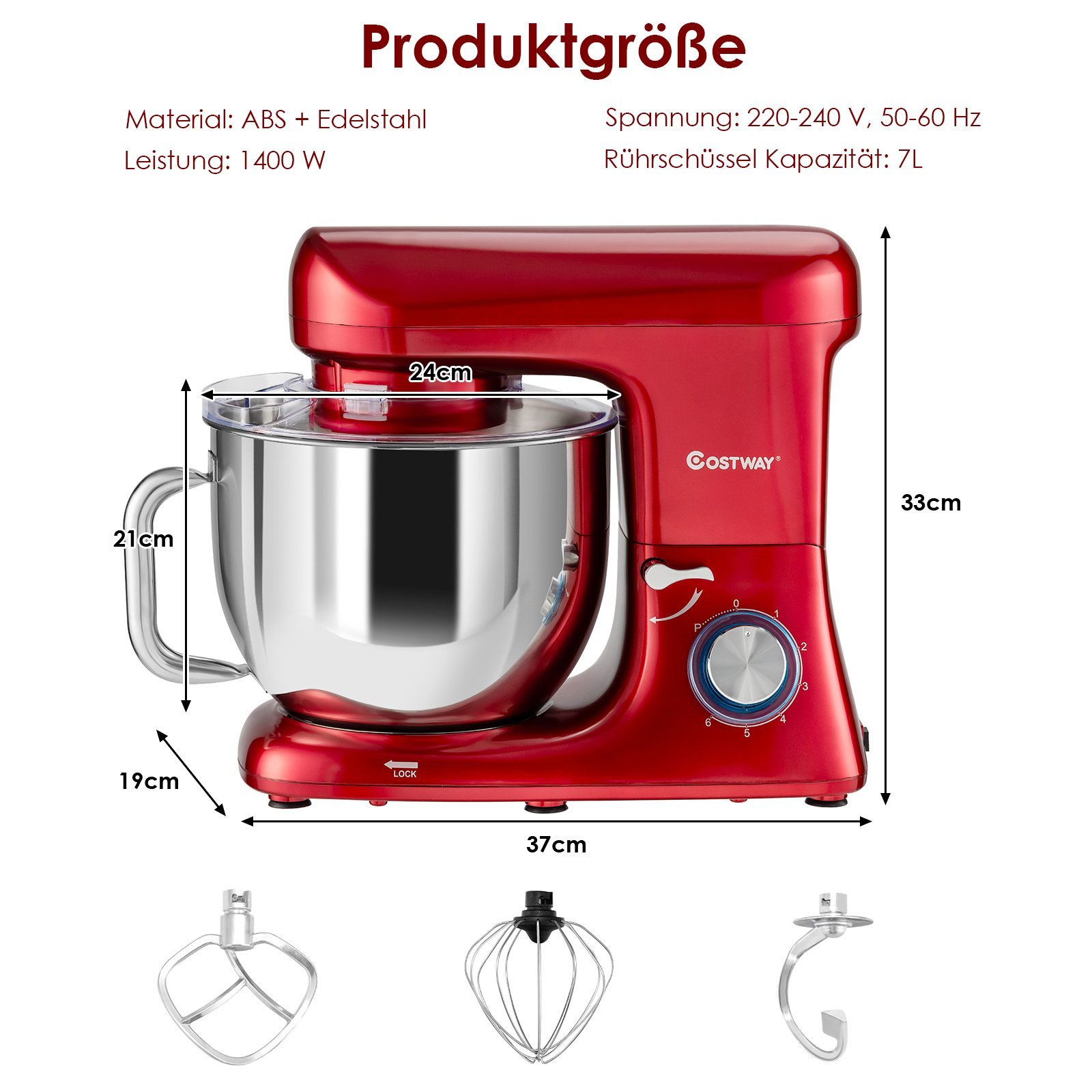 Elektrinis virtuvės kombainas su 6 greičio nustatymais (Raudona)