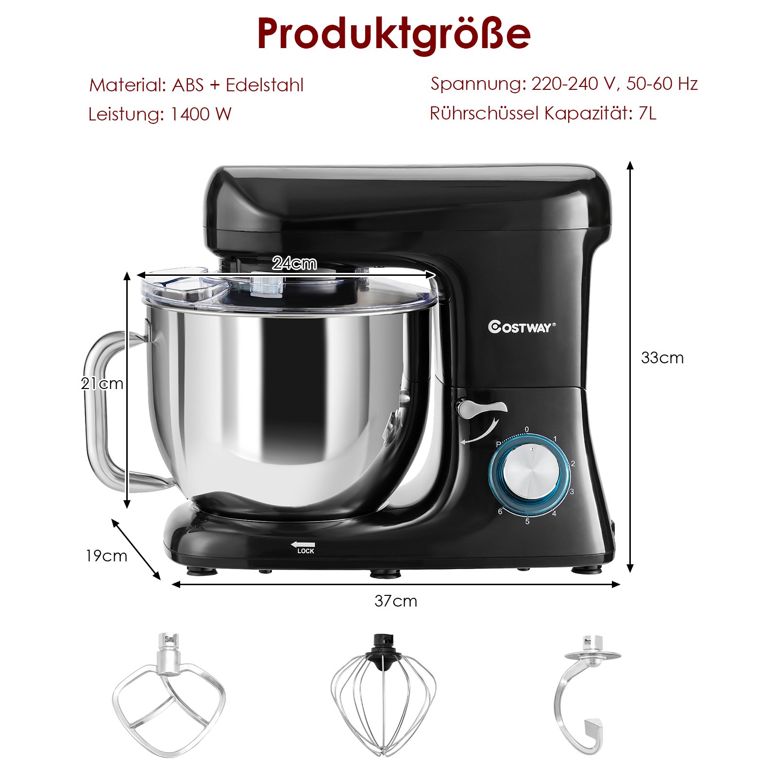 Elektrinis virtuvės kombainas su 7 litrų nerūdijančio plieno dubeniu (Juoda)