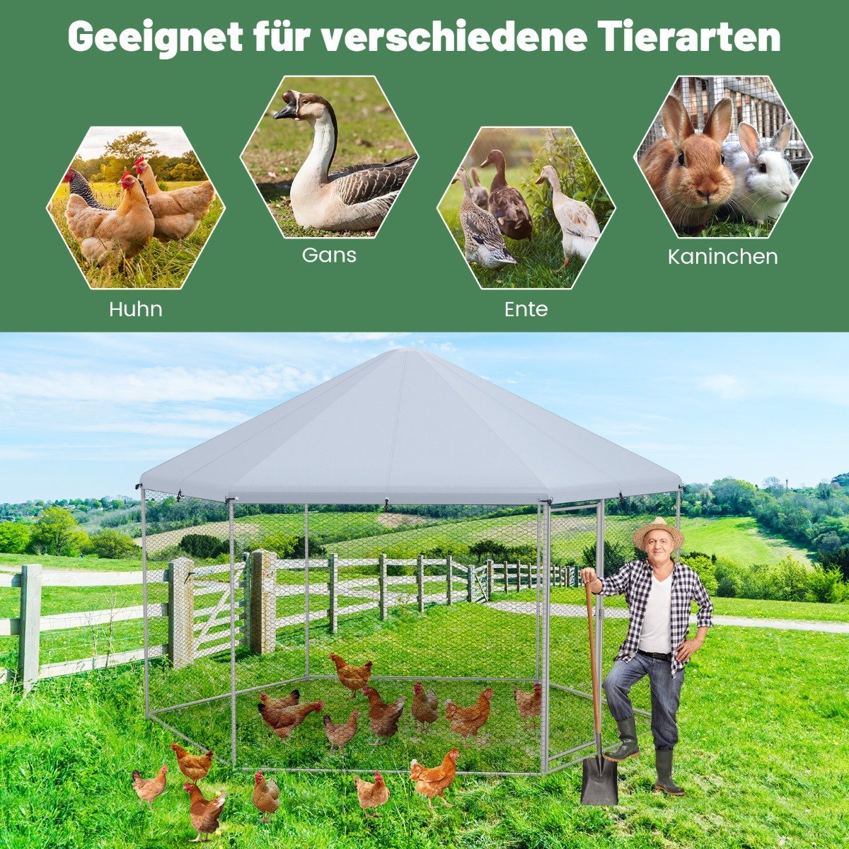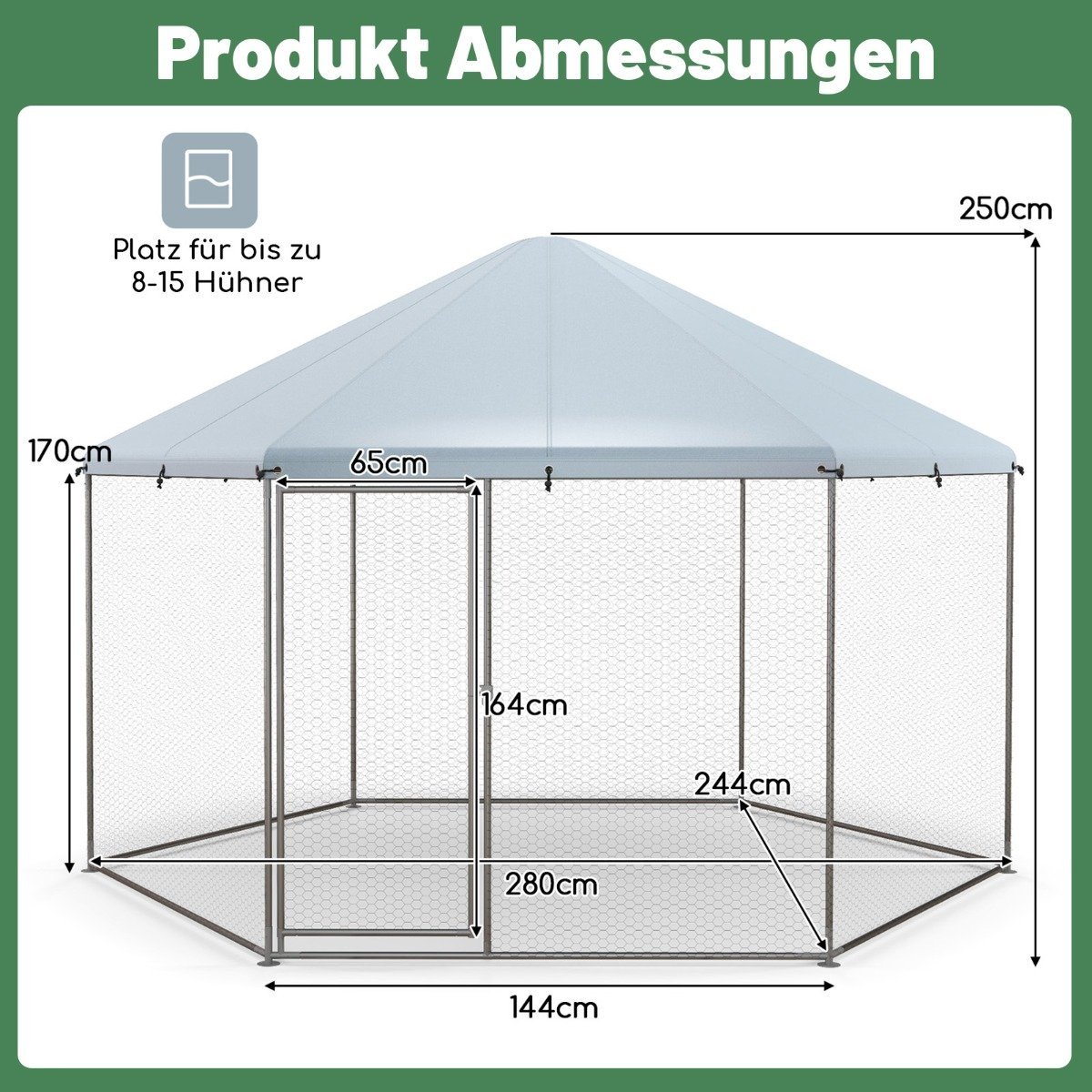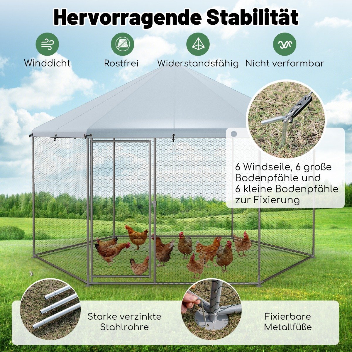 Sukurkite saugią ir patogią aplinką savo augintiniams paukščiams su šiuo tvirtu ir erdviu vištidės aptvaru. Jis sukurtas atlaikyti įvairias oro sąlygas ir užtikrinti jūsų paukščių saugumą bei gerovę.