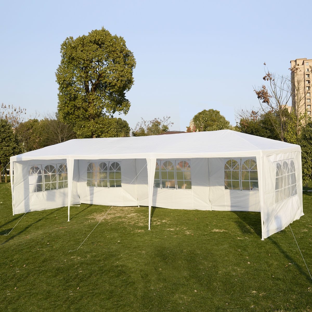 Erdvi pobūvių palapinė su langais 3×9 m (Balta)