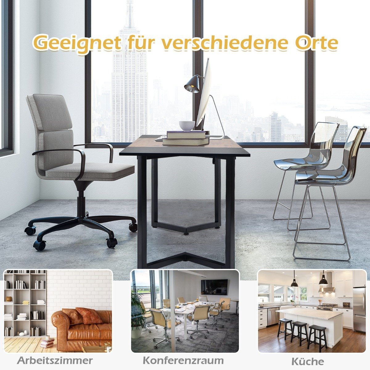 - Universali paskirtis: tinkamas kaip kompiuterio, rašomasis, valgomasis ar konferencijų stalas.