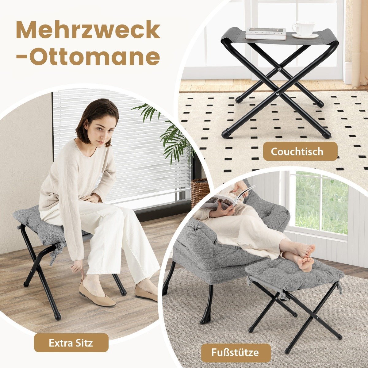- Universali koja gali būti naudojama kaip staliukas, papildoma kėdutė ar tiesiog atrama kojoms.