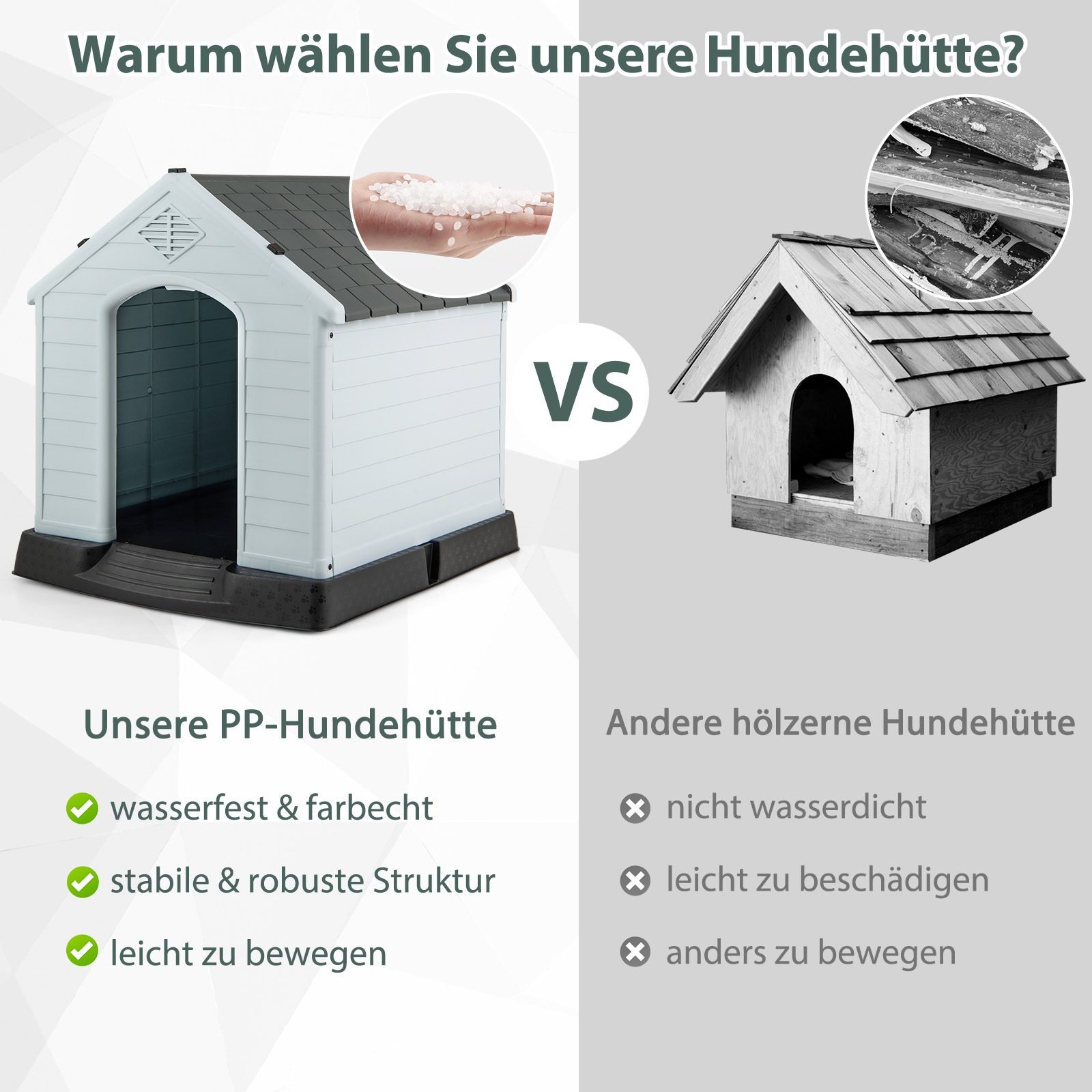 Užtikrinkite savo keturkojo draugo komfortą ir saugumą su mūsų tvirta, vandeniui atsparia šunų būda. Ji sukurta taip, kad jūsų augintinis galėtų žaisti, ilsėtis ir mėgautis laisvalaikiu lauke bet kokiomis oro sąlygomis.