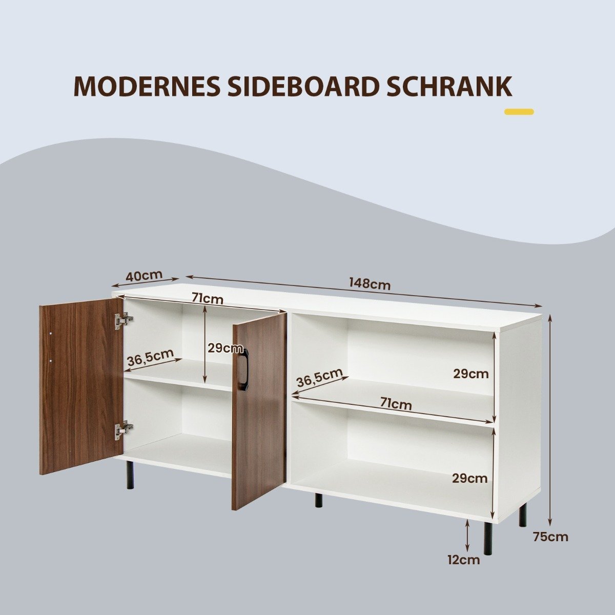 Padidinkite savo namų funkcionalumą ir stilių su šiuo erdviu komodos tipo baldu. Sukurtas tvarkingai laikyti jūsų daiktus, šis baldas puikiai tiks virtuvėje, valgomajame ar svetainėje.