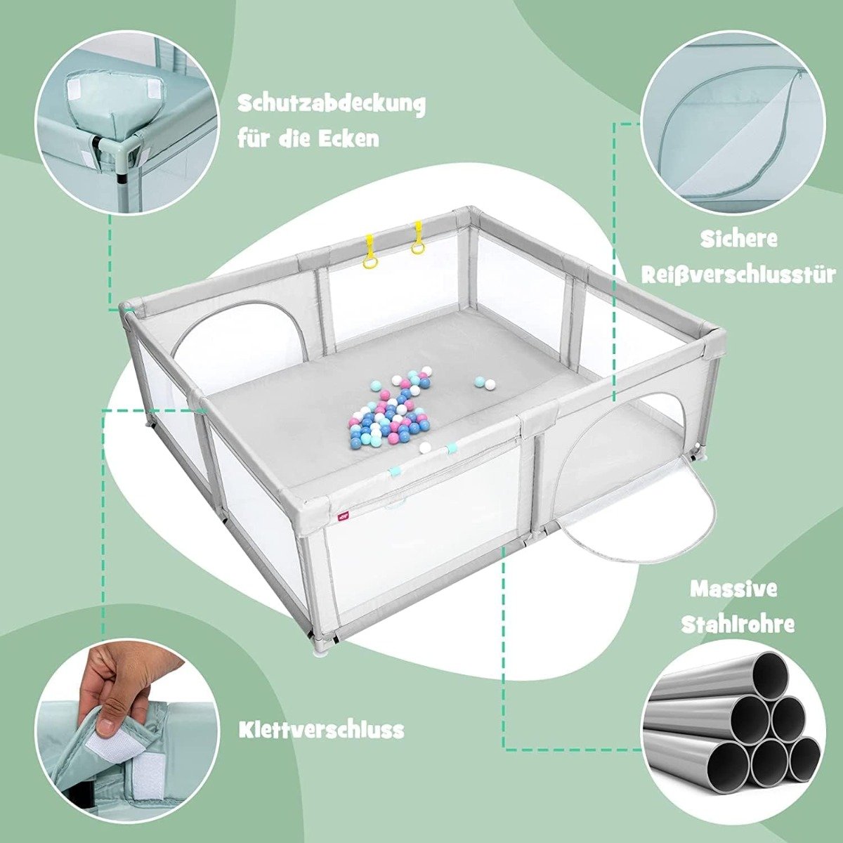 Erdvus maniežas su čiužiniu ir 50 žaidimo kamuoliukų (Šviesiai pilka)