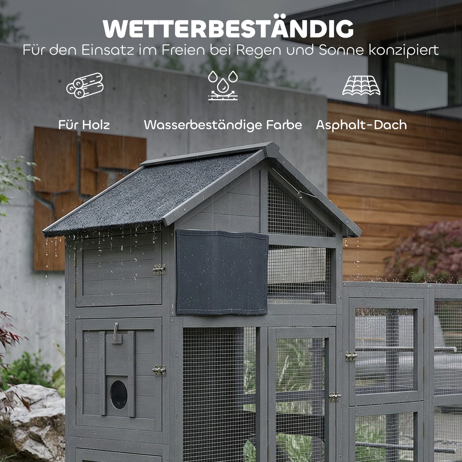✔ Oro sąlygoms atsparus asfalto stogas išlaiko voljeros vidų sausą per stiprų lietų ar intensyvią saulę