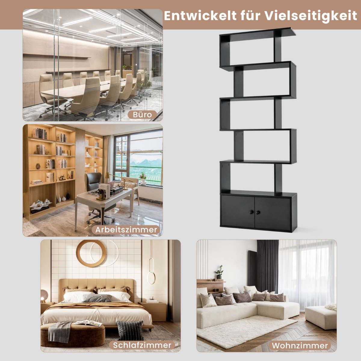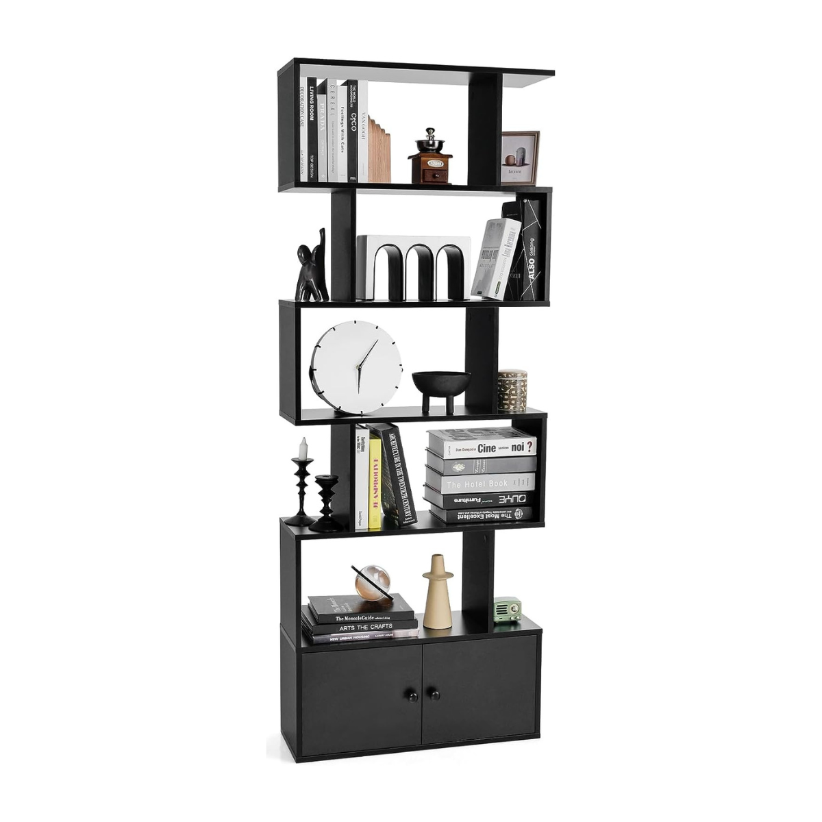 Erdvus S formos lentynų ir spintelių derinys (Juoda)