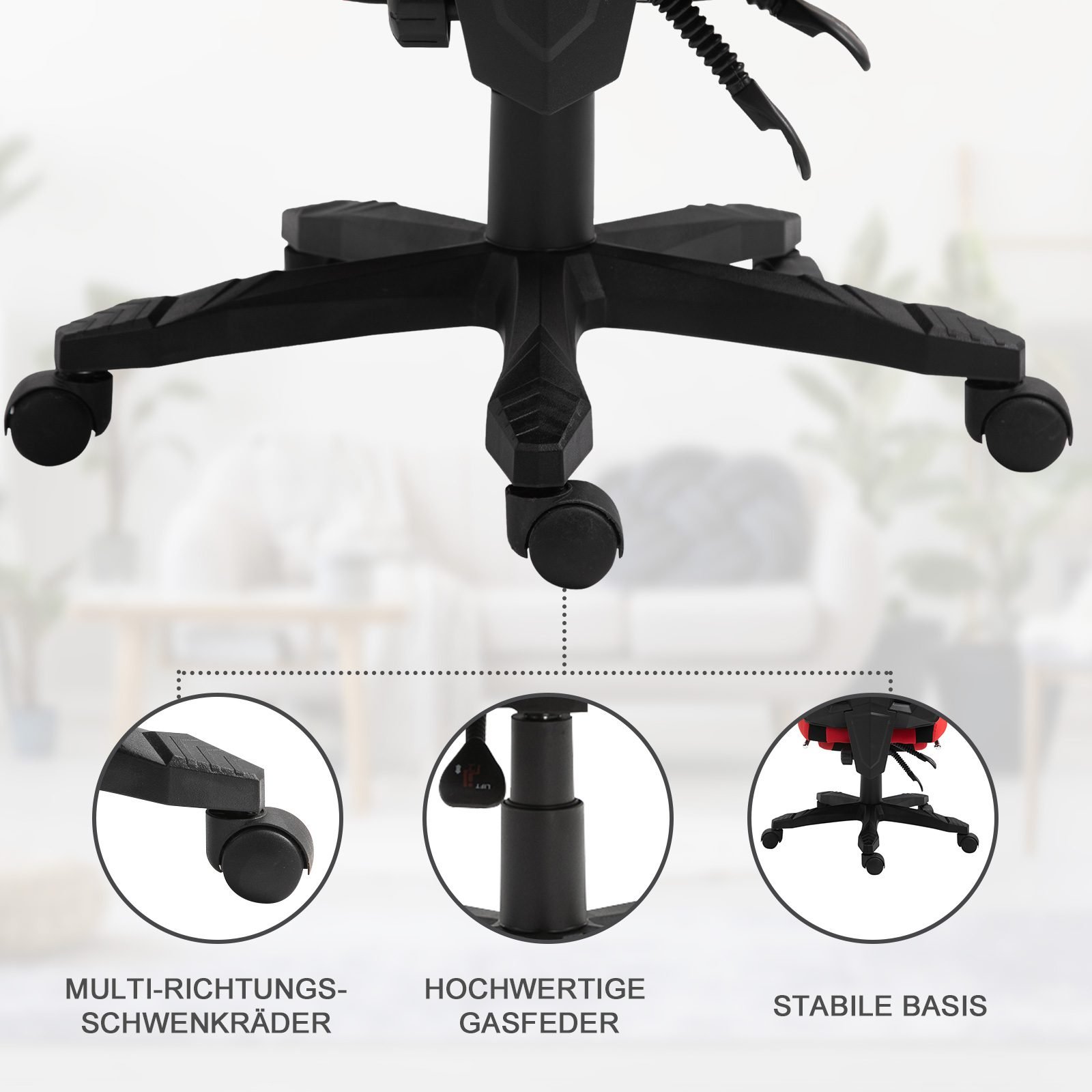 ✔ Aukščiausios klasės dujinis pakėlimo mechanizmas ir ratukai užtikrina sklandų aukščio reguliavimą ir judėjimą