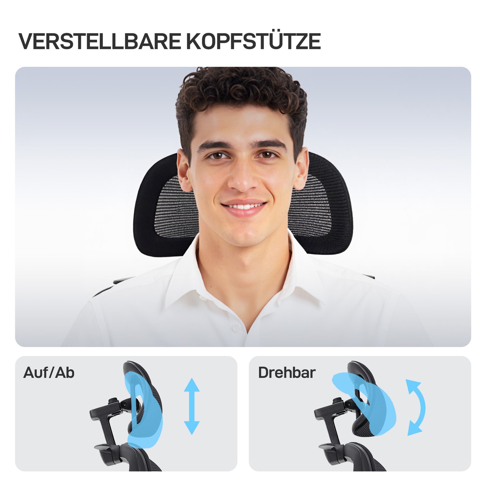 Optimizuokite savo darbo vietą su biuro kėde, kuri užtikrina visos dienos komfortą ir atramą. 3 zonų juosmens atrama prisitaiko prie jūsų judesių, mažina nuovargį ir skatina susikaupimą. Su reguliuojamais 3D porankiais, kurie mažina rankų įtampą, kvėpuojančiu tinkleliu ir stilingu, moderniu dizainu, ši rašomojo stalo kėdė sujungia estetiką ir funkcionalumą jūsų produktyviam namų biurui.