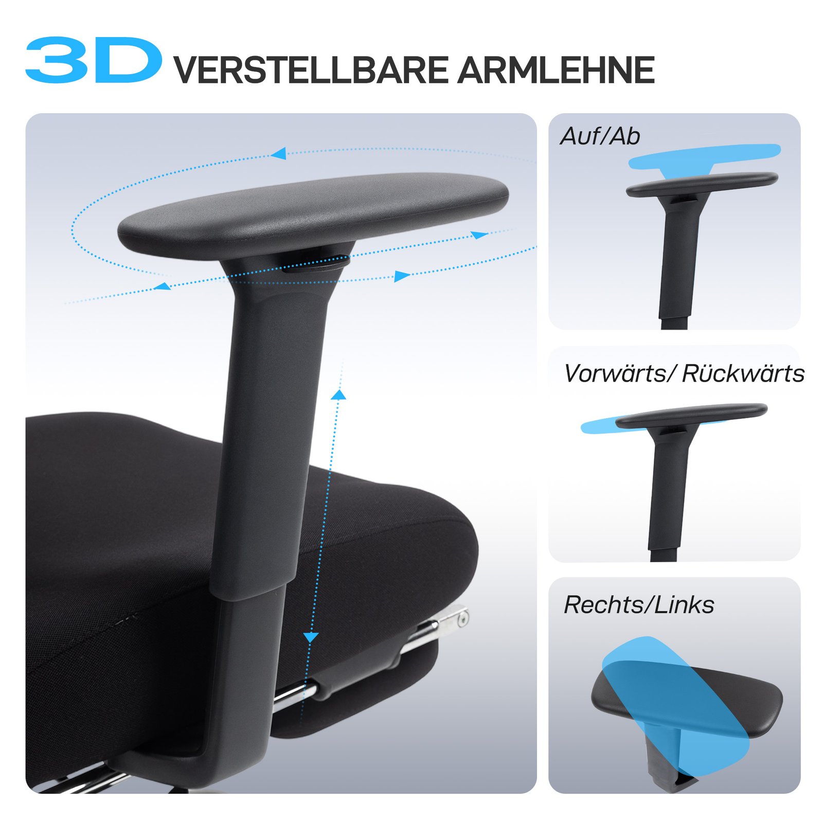 Ergonomiška biuro kėdė su 3 zonų juosmens atrama ir ištraukiama kojų atrama