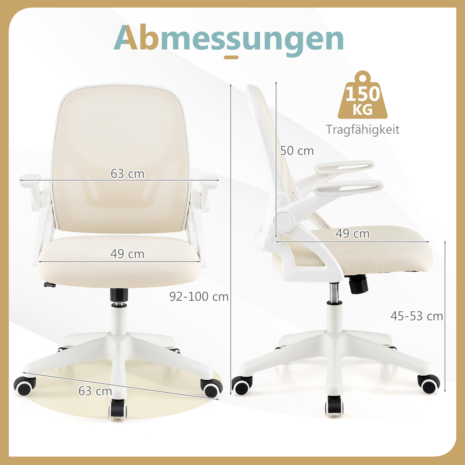 Ergonomiška biuro kėdė su atlenkiamais porankiais ir supamąja funkcija (Smėlio)