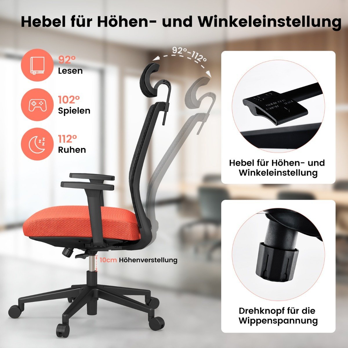 - Reguliuojamas sėdynės aukštis ir atlošo kampas
