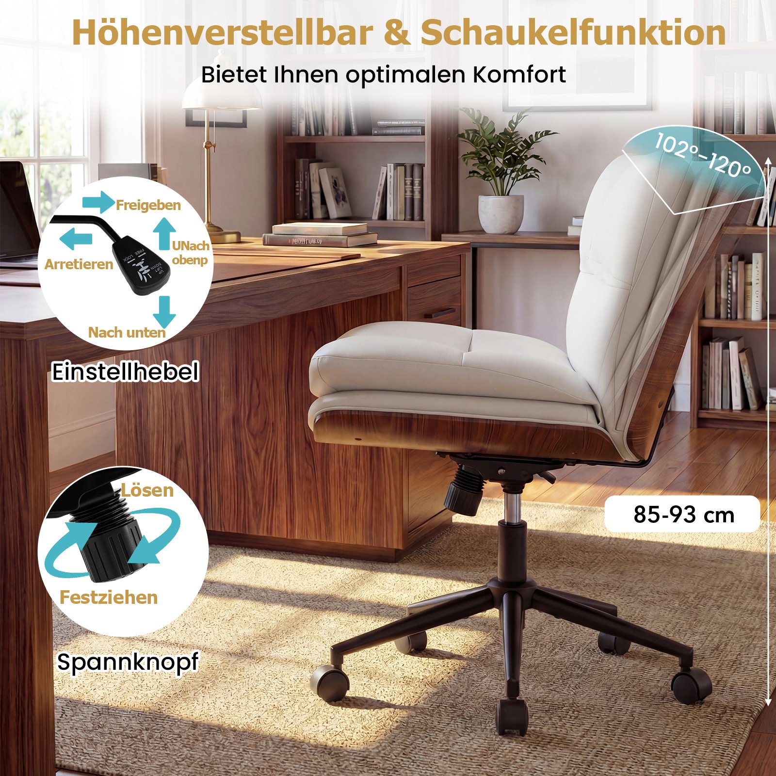 - Taupantis vietą ir mobilus: be porankių ir su penkiais sklandžiai riedančiais ratukais, kėdė lengvai telpa po bet kuriuo stalu.