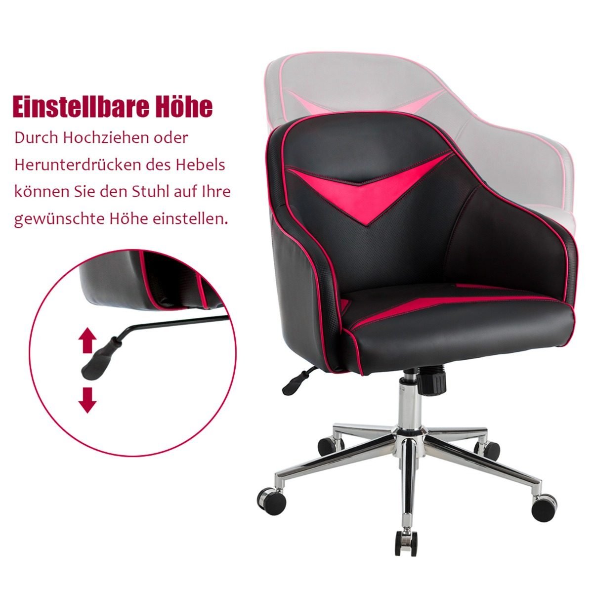 Ergonomiška biuro kėdė su reguliuojamu aukščiu ir atlošu (Raudona)