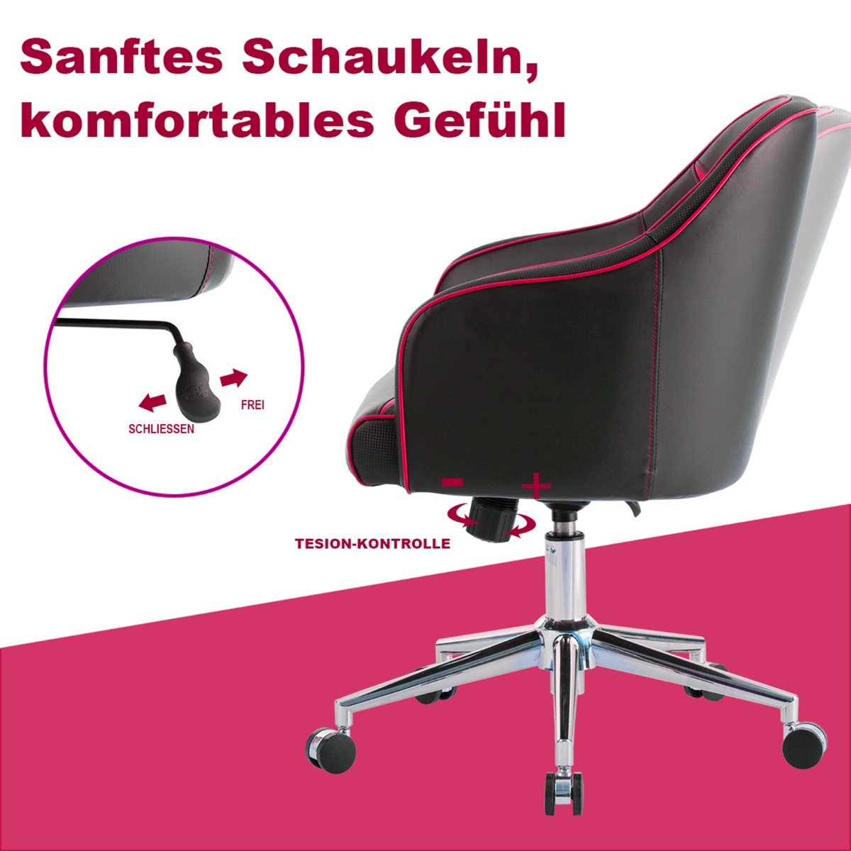 - Tvirtas metalinis pagrindas ir aukštos kokybės dujinis pakėlimo mechanizmas garantuoja patikimą kasdienį naudojimą.