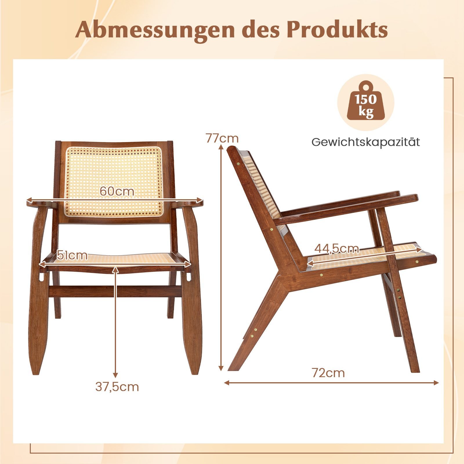 Ergonomiška ratano valgomojo kėdė su bambuko rėmu (Ruda)