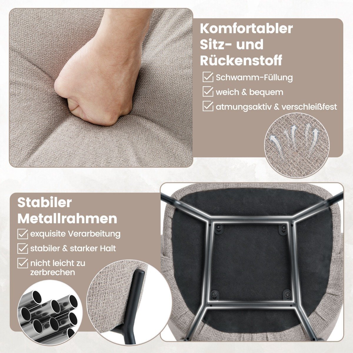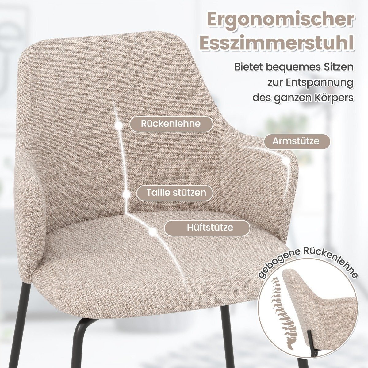 Ergonomiška valgomojo kėdė lenktu atlošu (Smėlio)