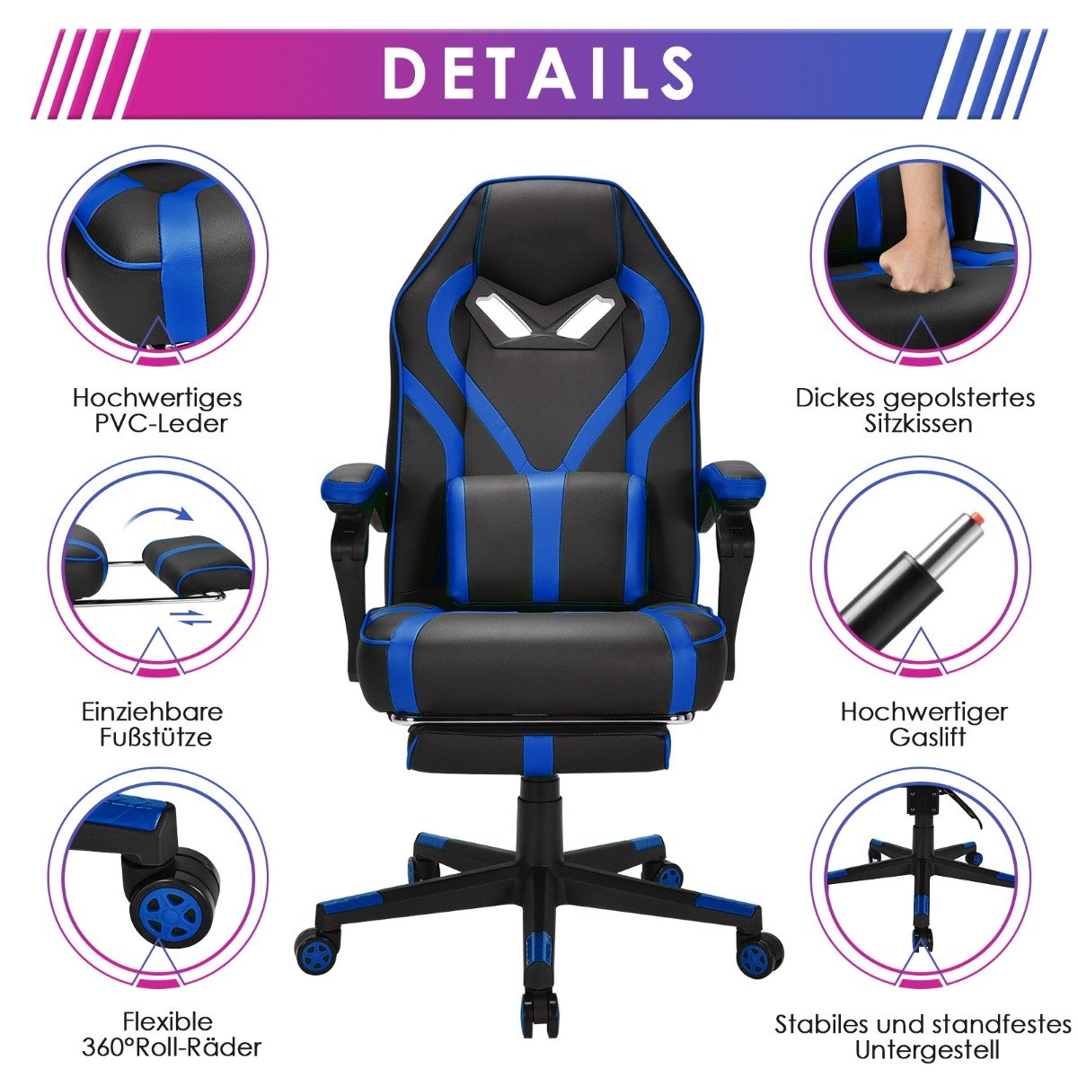 Ergonomiška žaidimų kėdė su ištraukiama kojų atrama (Mėlyna)