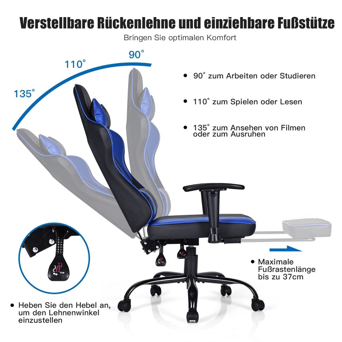 Ergonomiška žaidimų kėdė su ištraukiama kojų atrama (Mėlyna)