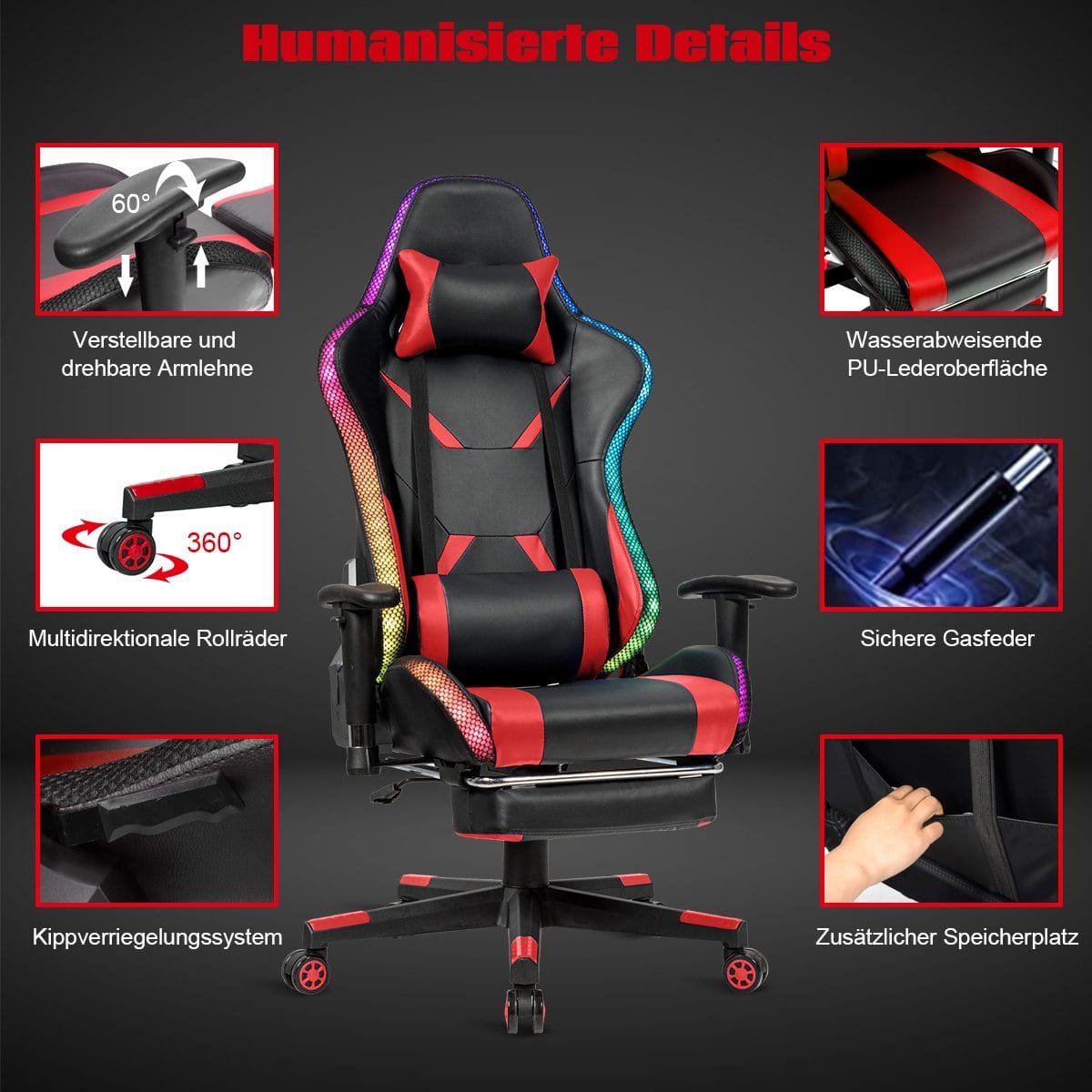 - Ergonomiškas dizainas su nuimama galvos atrama ir juosmens atrama.