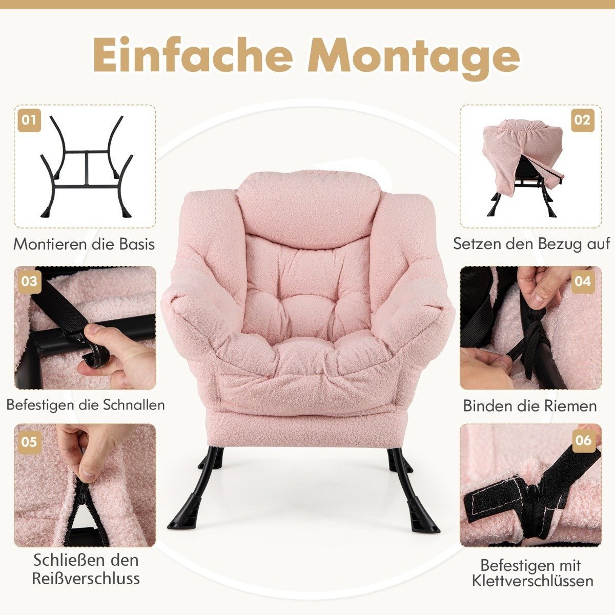 Patogus fotelis su pakoja ir šonine kišene (Rožinė)