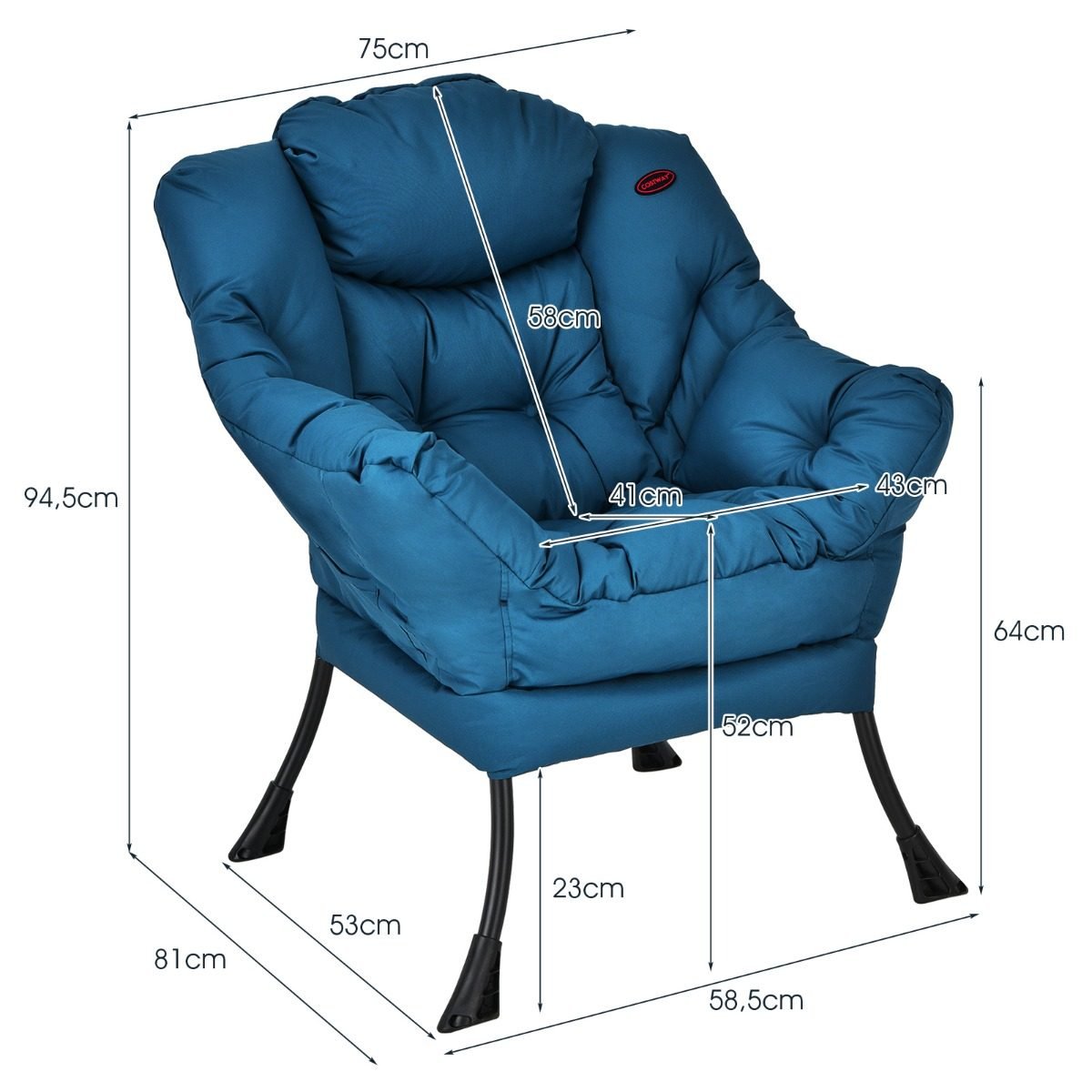 Ergonomiškas poilsio krėslas su porankiais ir šonine kišene (Tamsiai mėlyna)