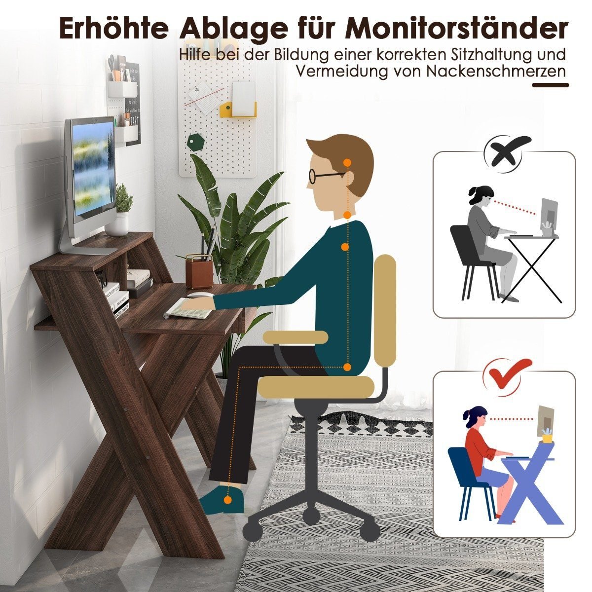 • Ergonomiškas monitoriaus pakylėjimas skatina taisyklingą laikyseną ir mažina kaklo įtampą.