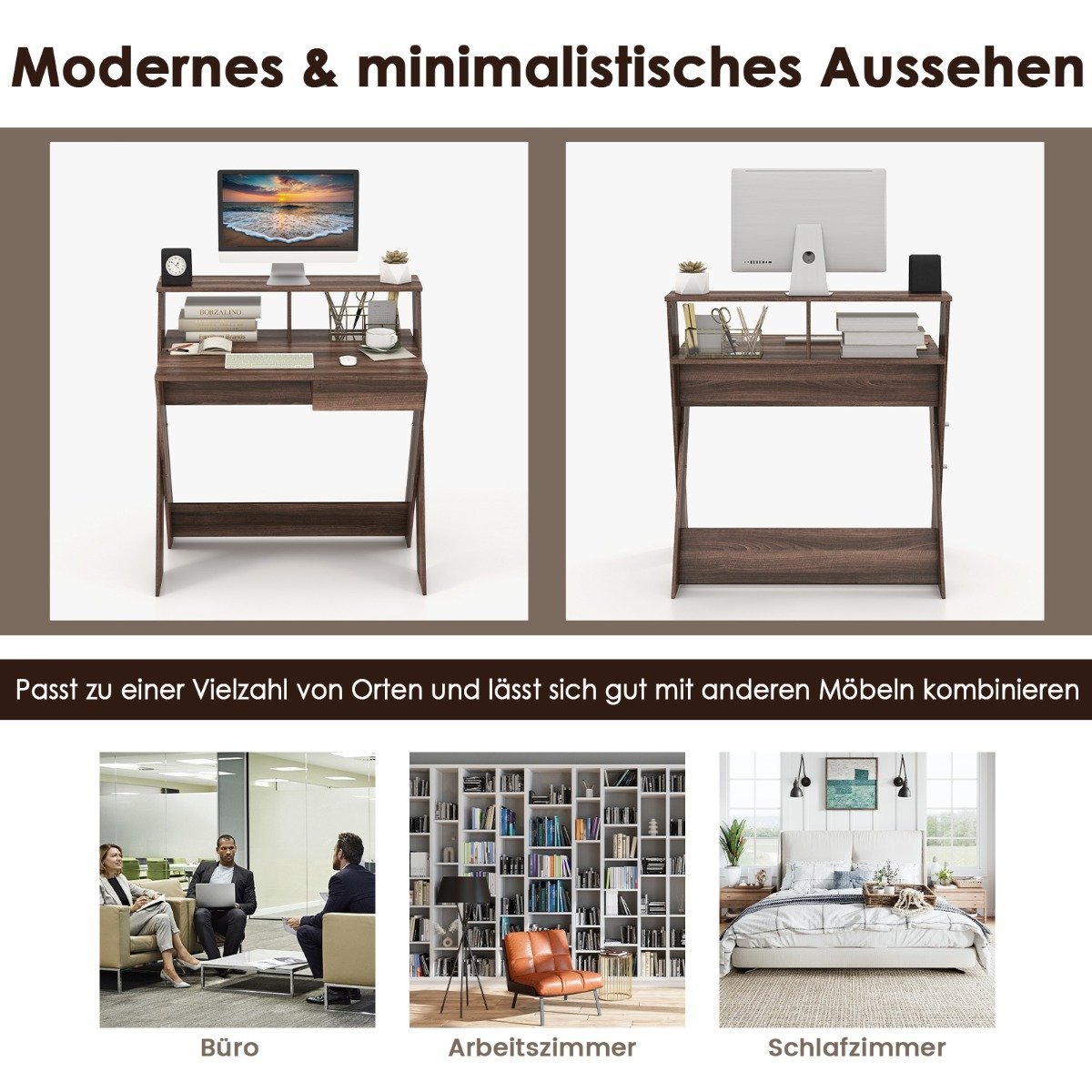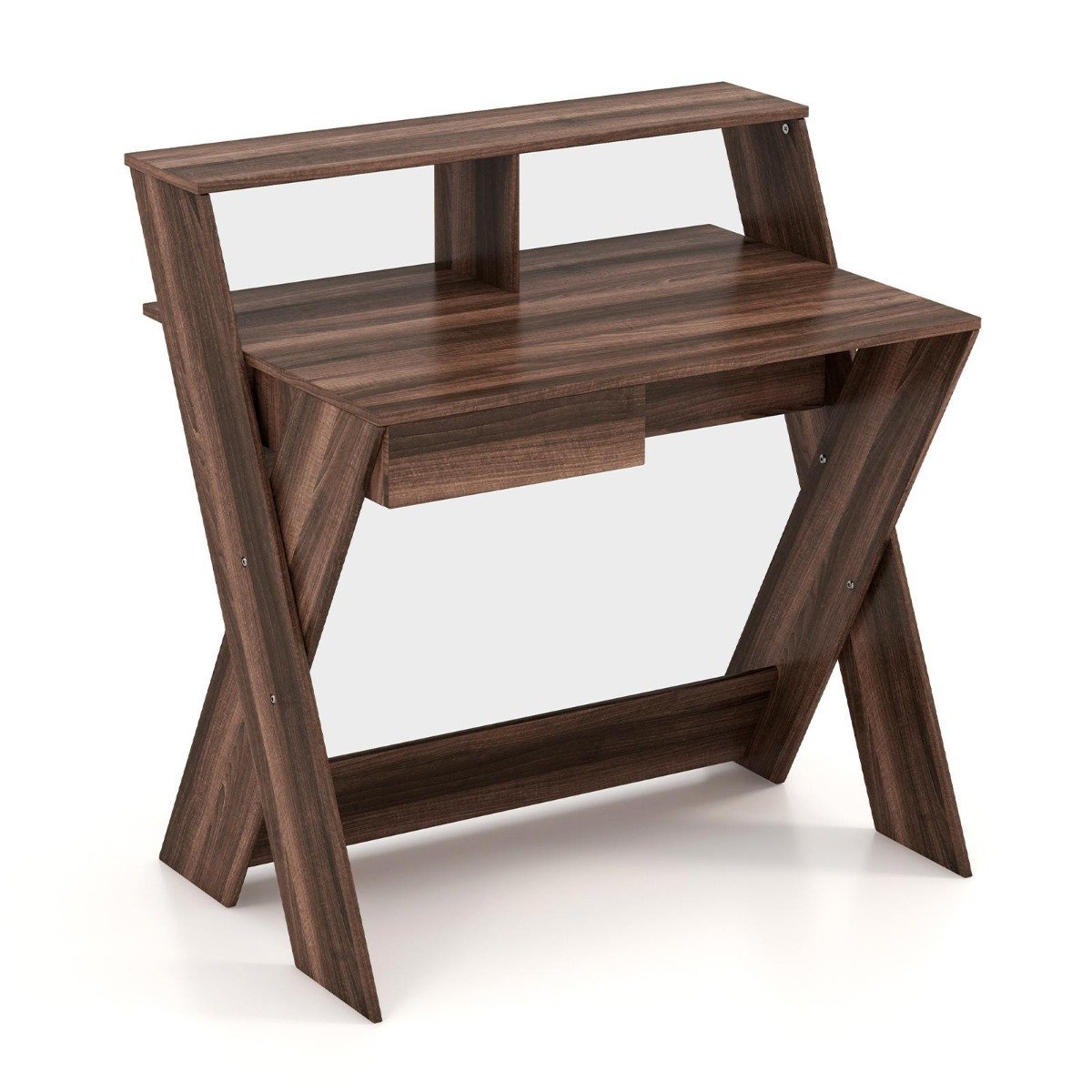 Ergonomiškas rašomasis stalas su monitoriaus pakylėjimu ir stalčiumi (Ruda)